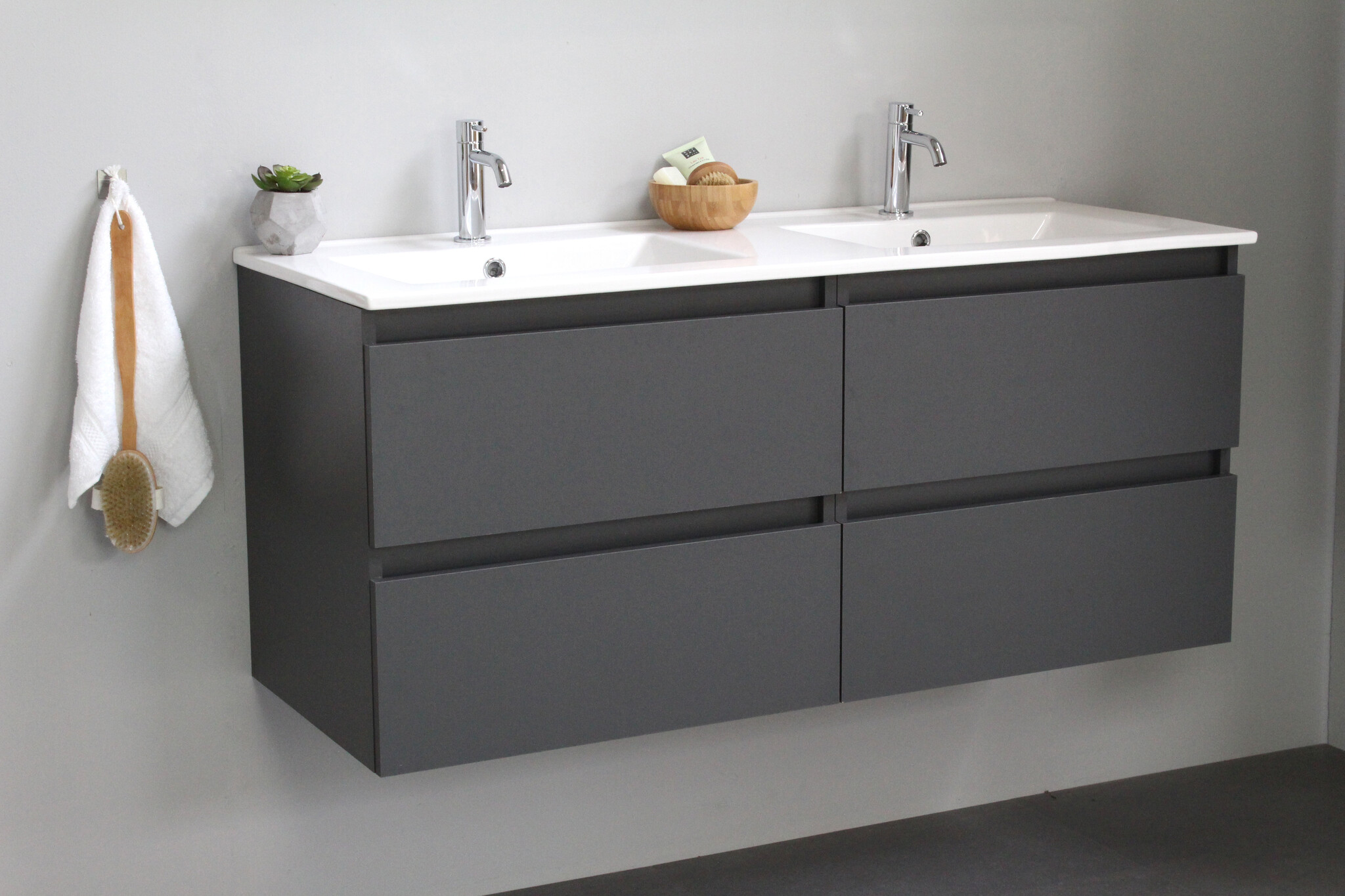 Offerte aanvraag voor Solidline badkamermeubelset | 120cm | Keramiek | Wit | 2 | Mat antraciet | Zonder spiegel | Bouwpakket