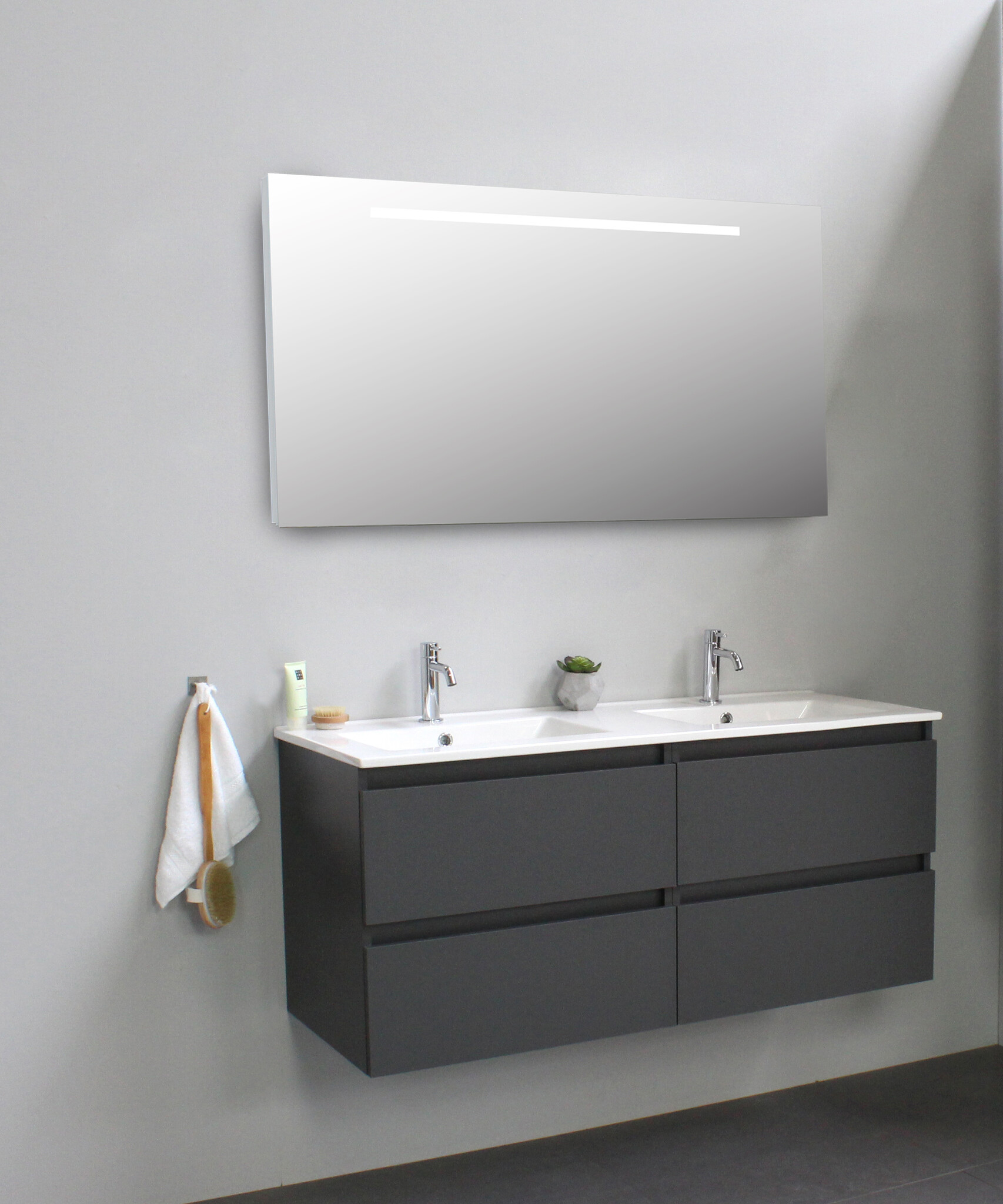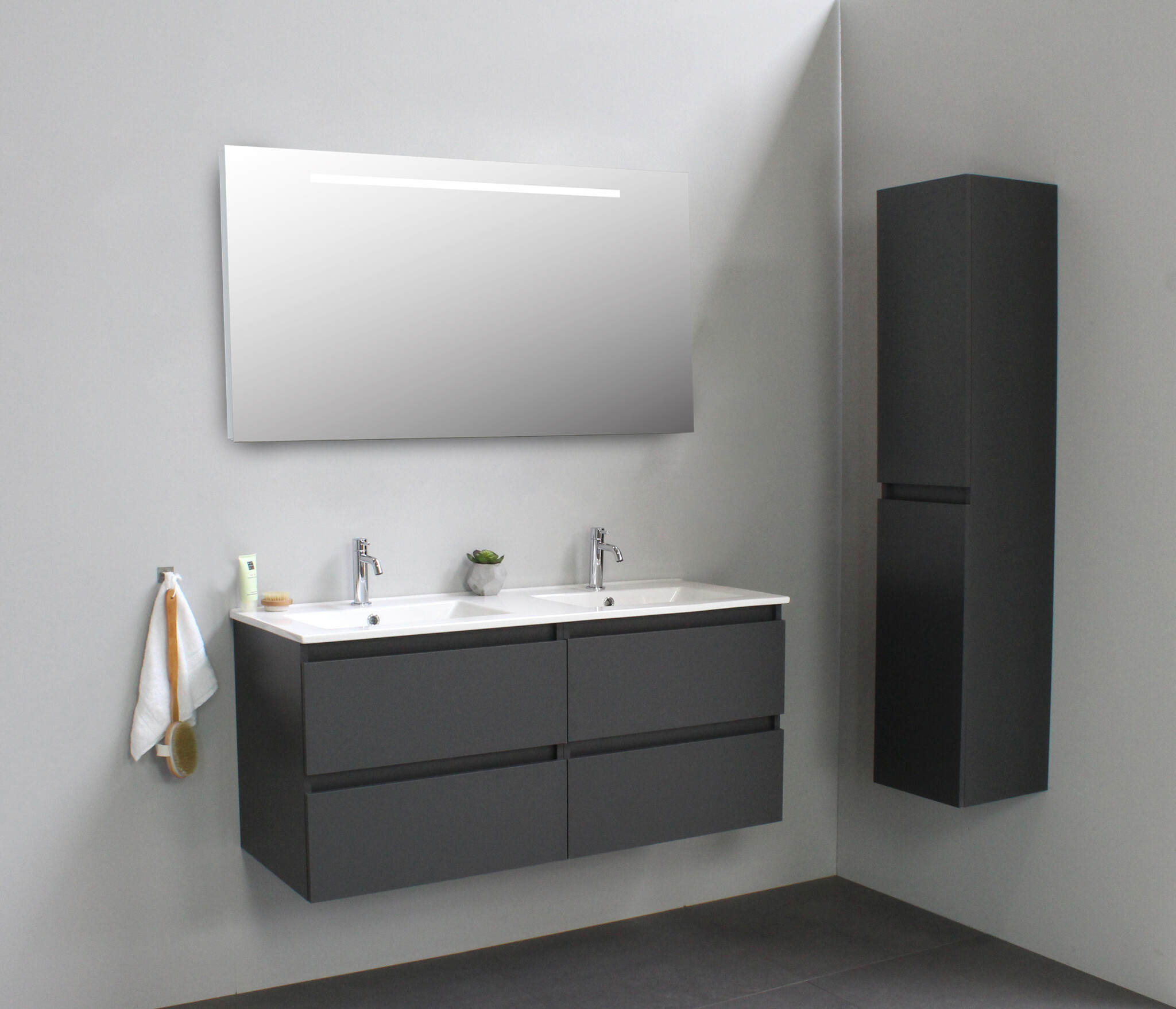 Solidline badkamermeubelset | 120cm | Keramiek | Wit | 2 | Mat antraciet | Spiegel met LED verlichting | Bouwpakket