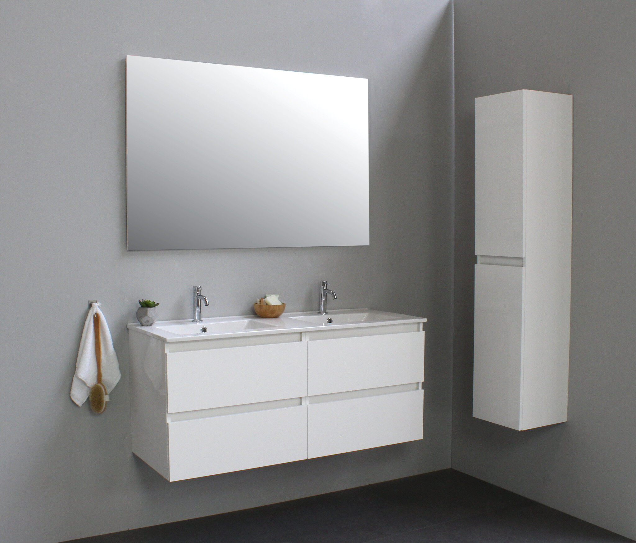 Offerte aanvraag voor Solidline badkamermeubelset | 120cm | Keramiek | Wit | 2 | Hoogglans wit | Zonder spiegel | Geassembleerd