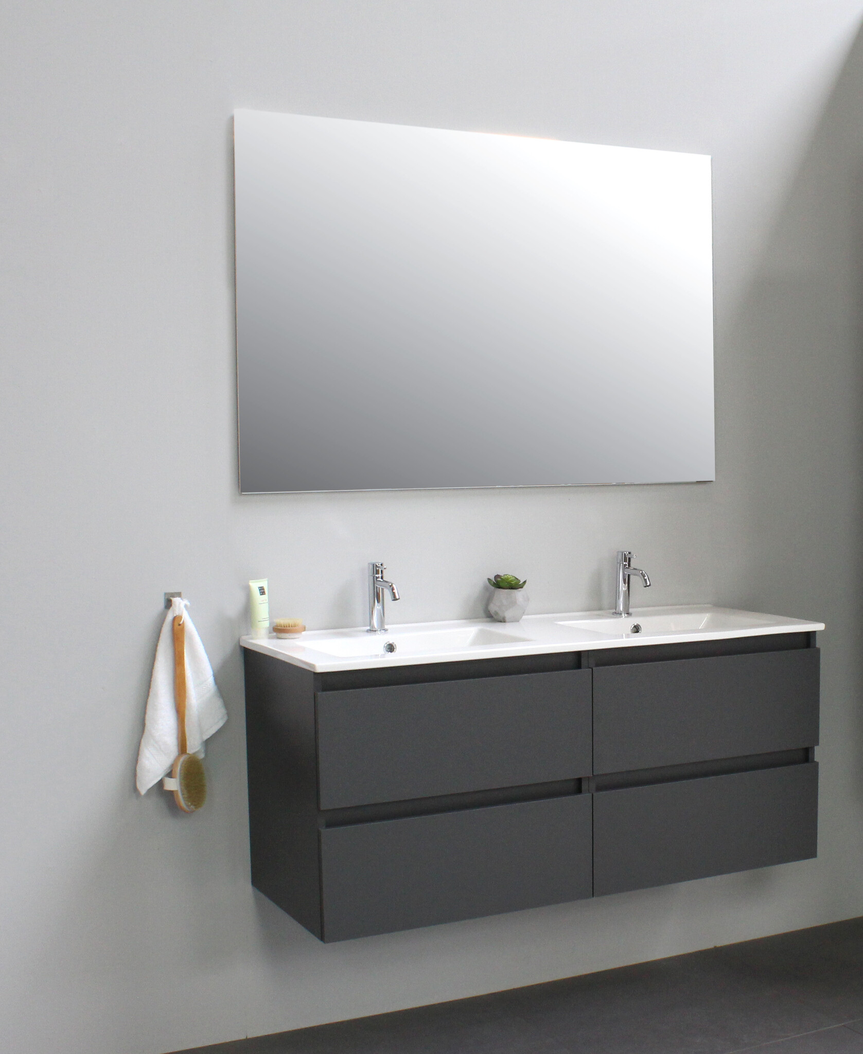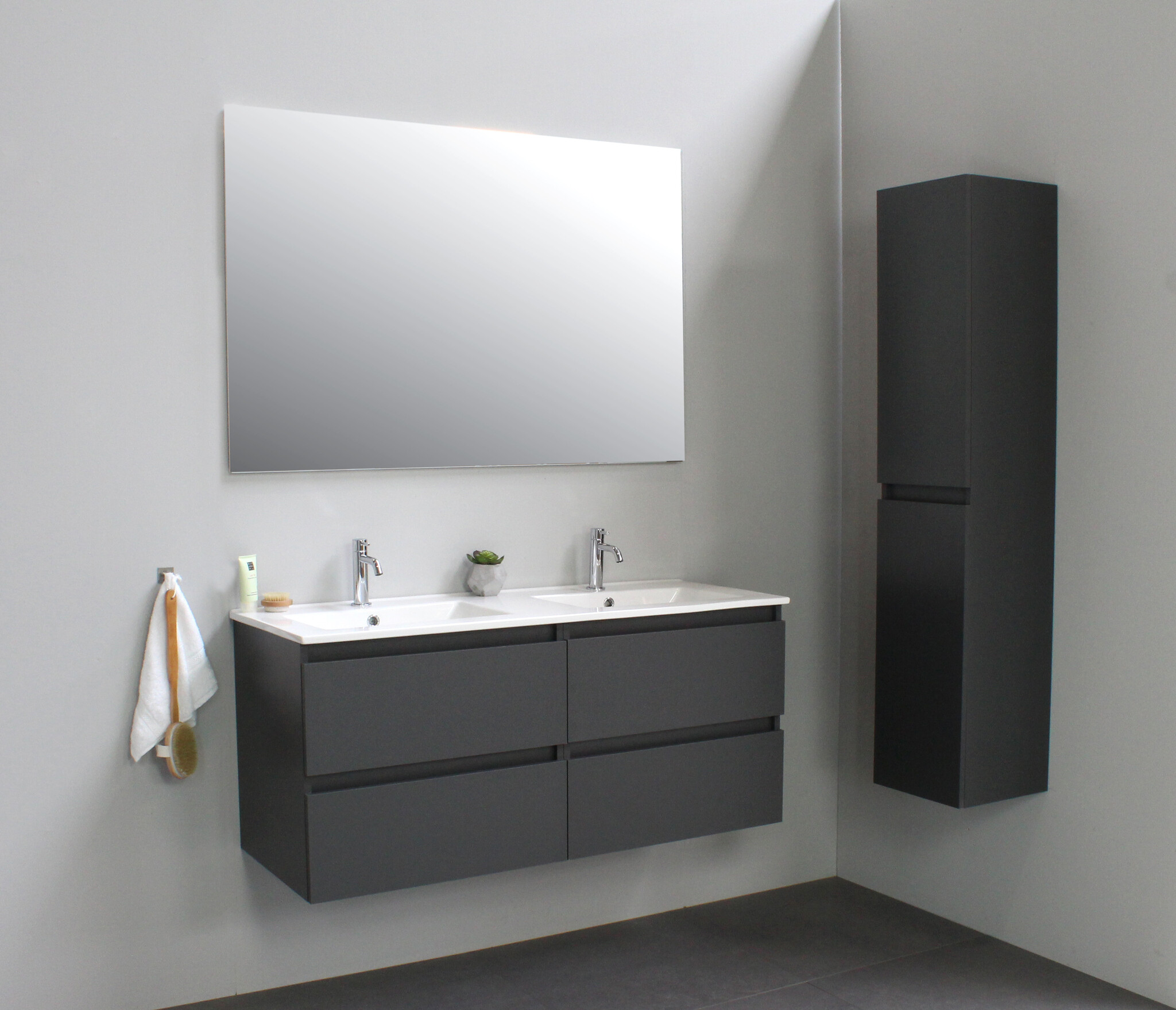 Offerte aanvraag voor Solidline badkamermeubelset | 120cm | Keramiek | Wit | 2 | Mat antraciet | Standaard spiegel | Geassembleerd