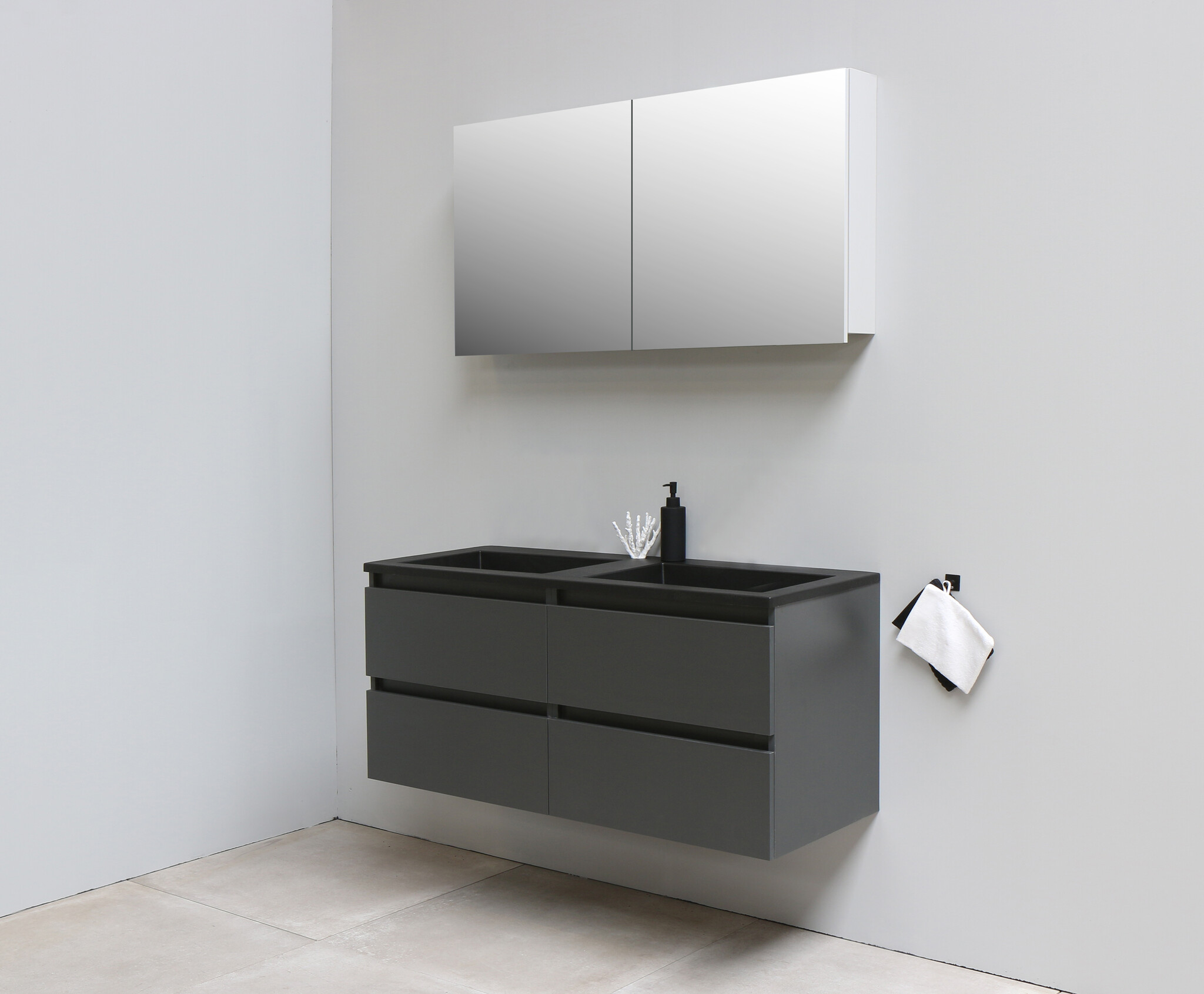 Offerte aanvraag voor Solidline badkamermeubelset | 120cm | Keramiek | Mat zwart | 0 | Mat antraciet | Met spiegelkast | Geassembleerd