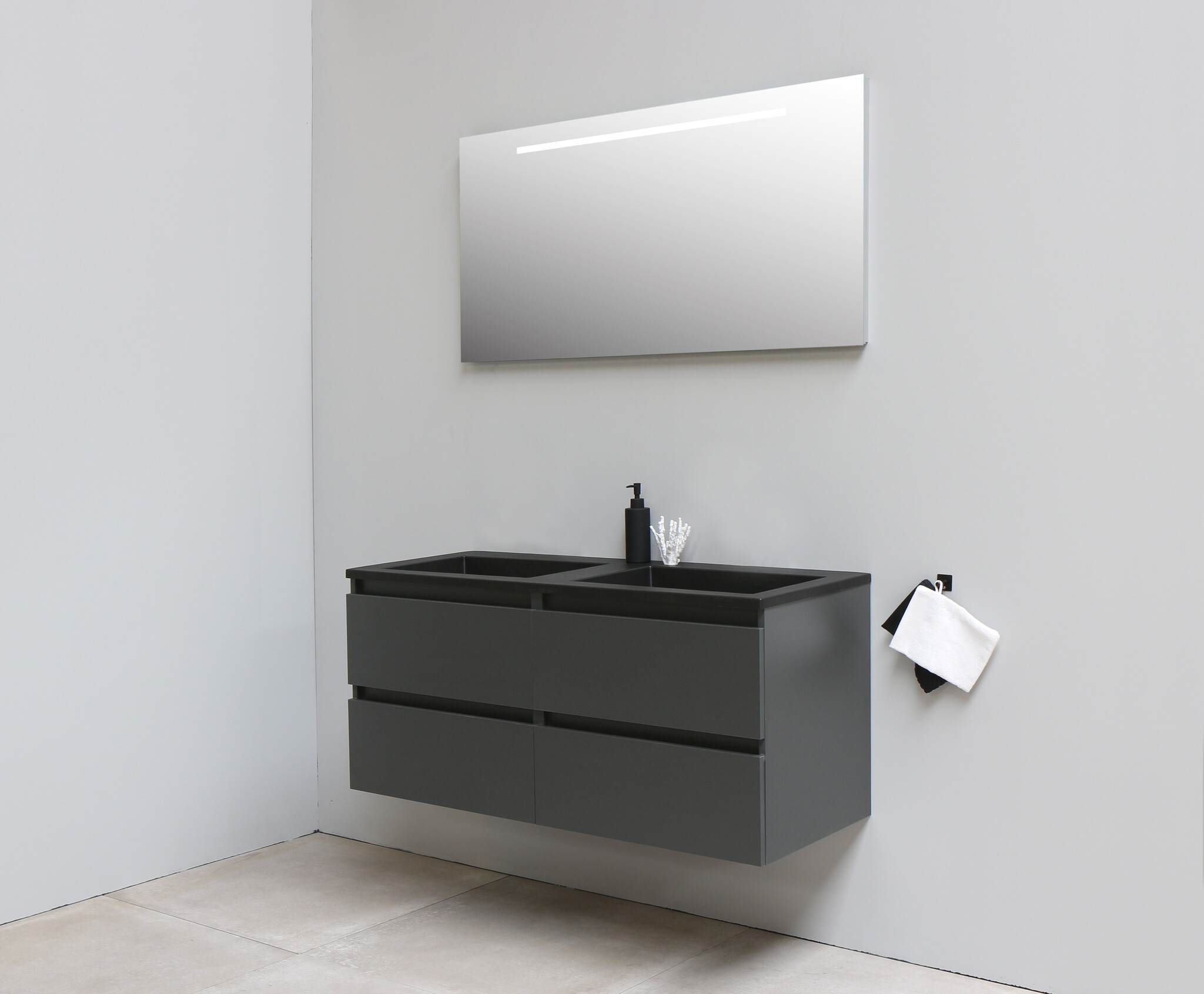 Solidline badkamermeubelset | 120cm | Keramiek | Mat zwart | 0 | Mat antraciet | Spiegel met LED verlichting | Geassembleerd