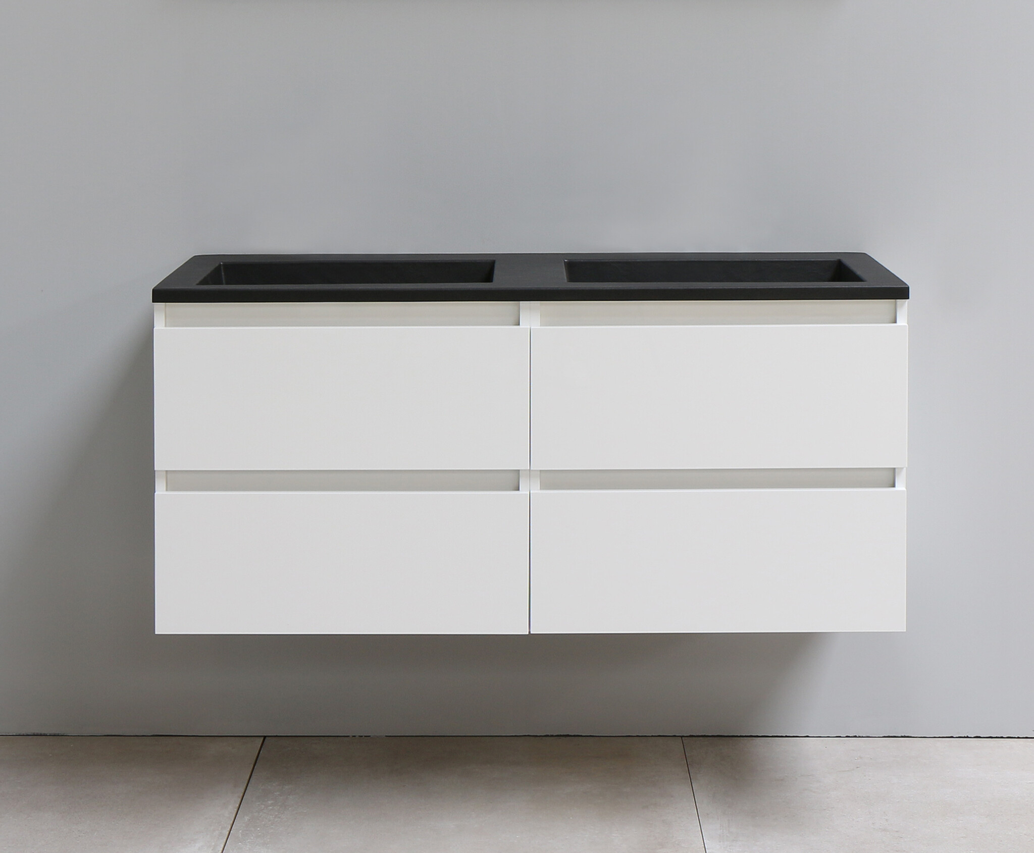 Solidline badkamermeubelset - 120cm - Keramiek - Mat zwart - 1 - Hoogglans wit - Zonder spiegel - Geassembleerd