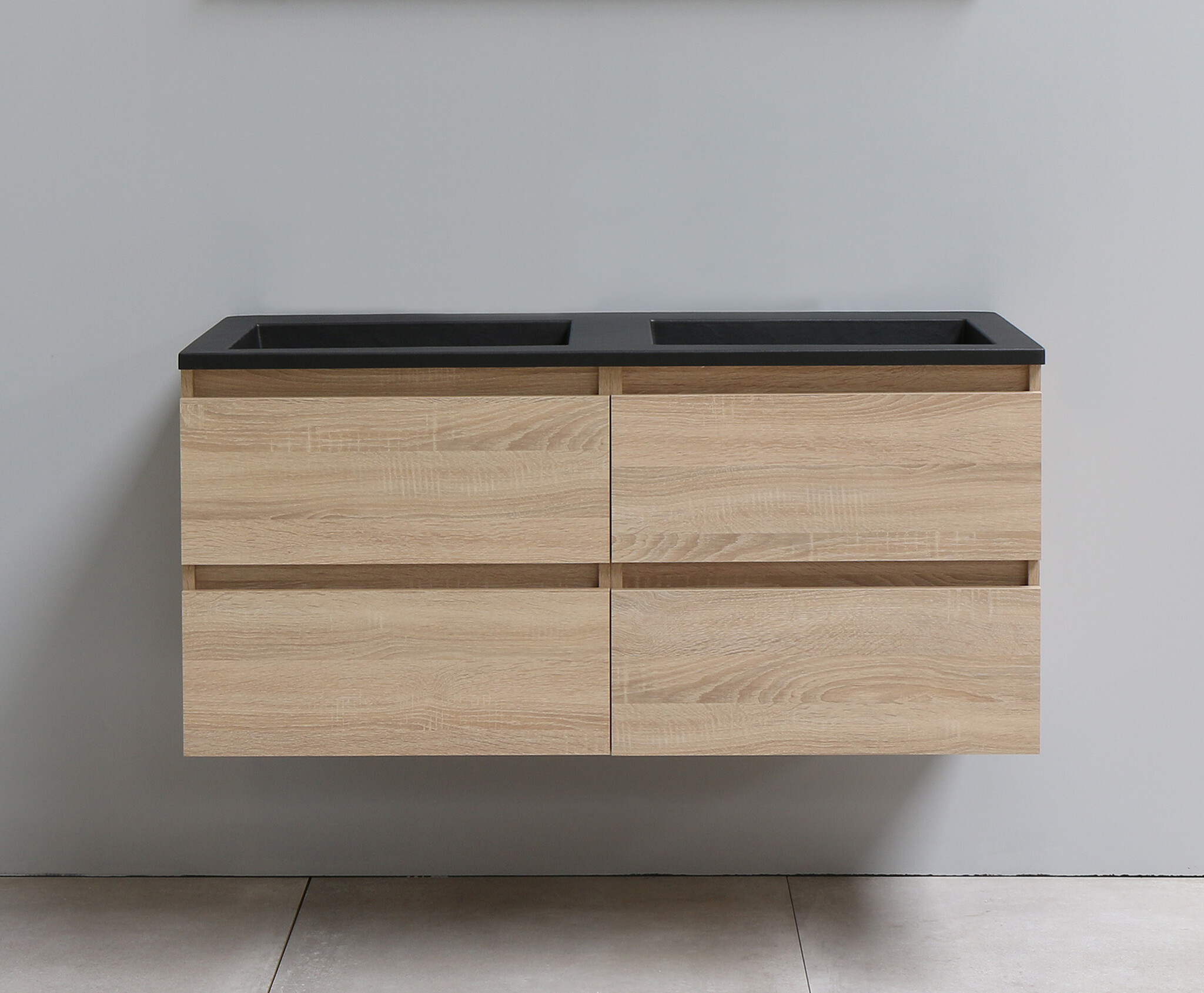 Solidline badkamermeubelset | 120cm | Keramiek | Mat zwart | 2 | Eiken | Zonder spiegel | Geassembleerd