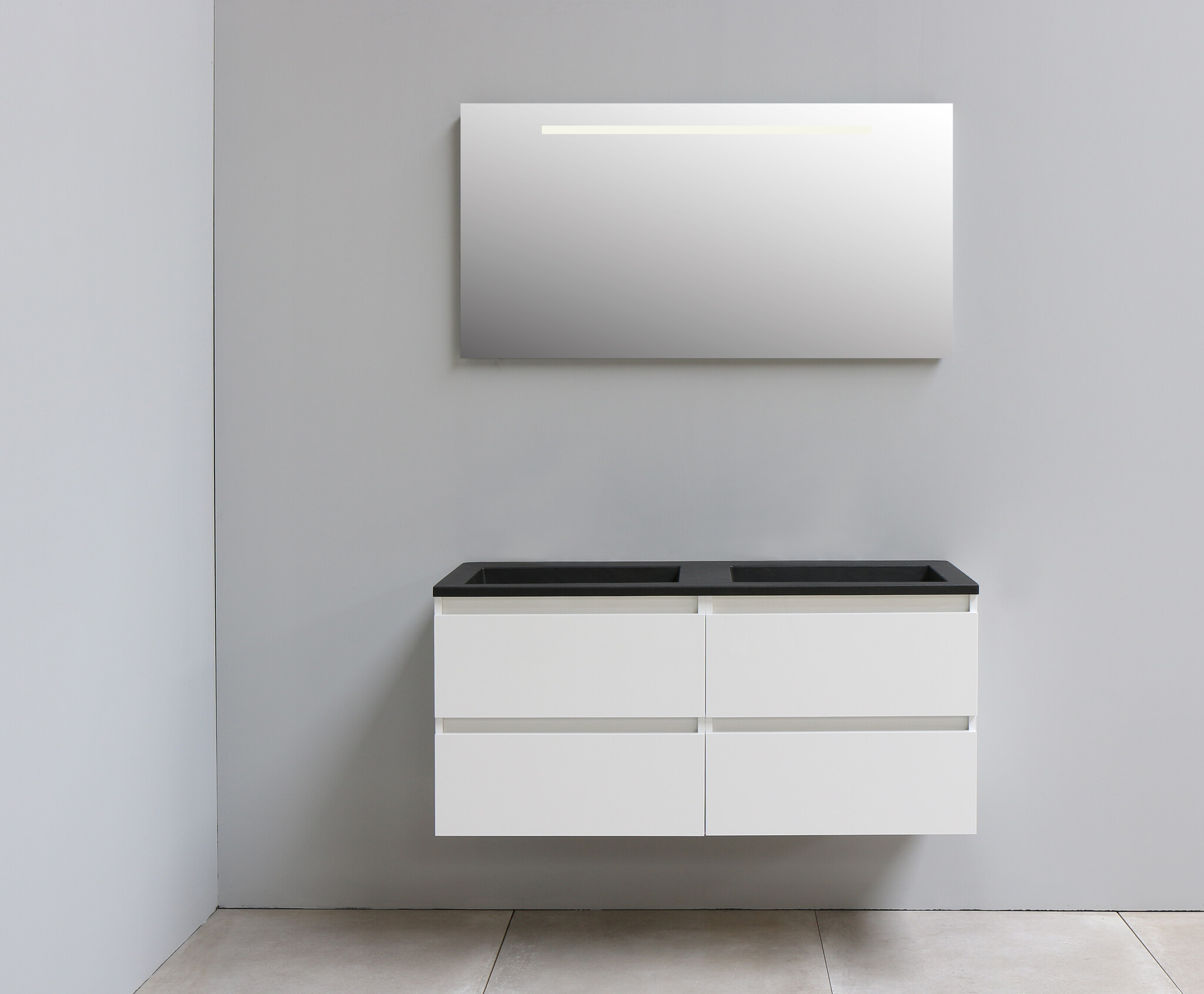 Solidline badkamermeubelset | 120cm | Keramiek | Mat zwart | 2 | Hoogglans wit | Spiegel met LED verlichting | Geassembleerd