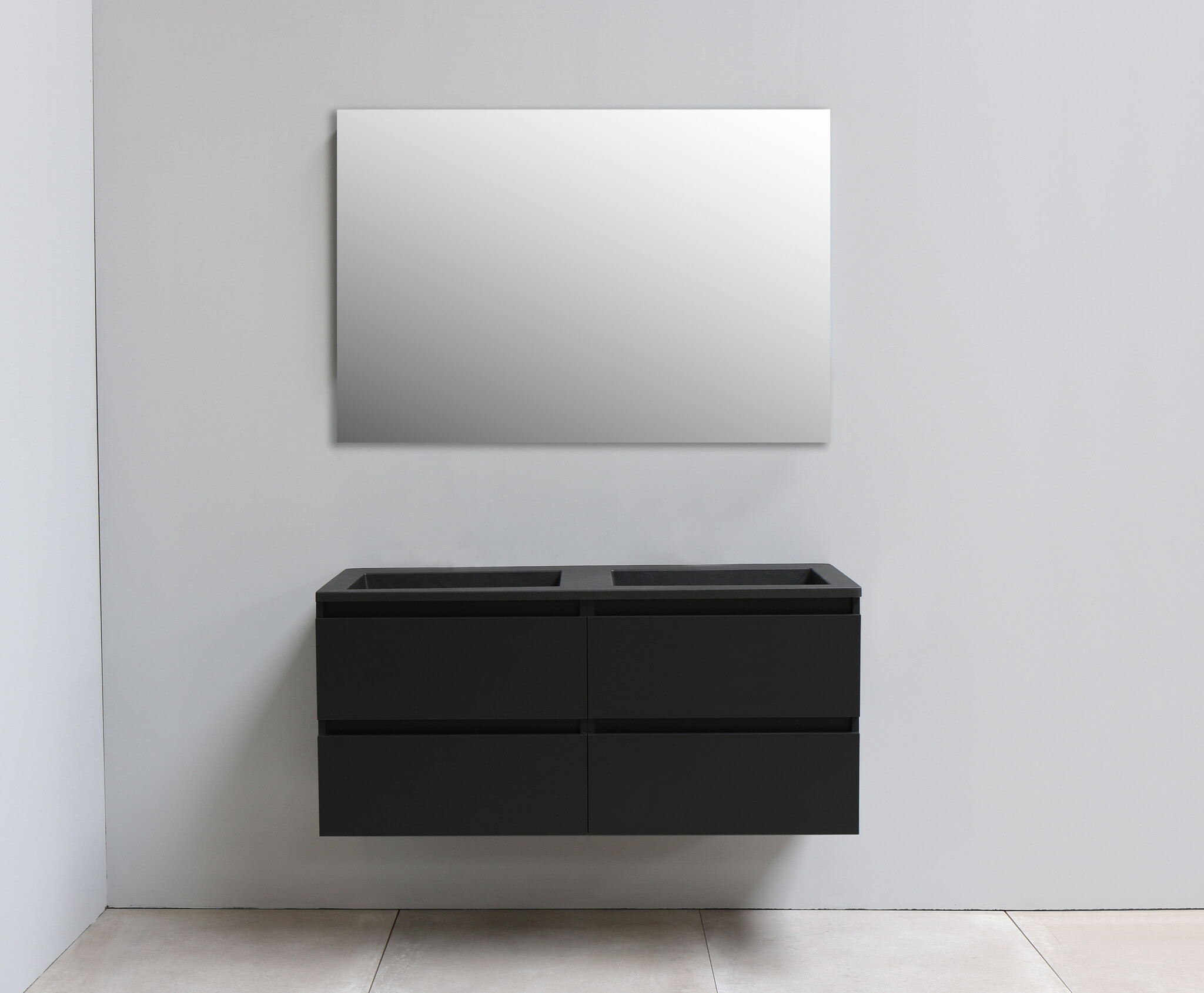 Solidline badkamermeubelset | 120cm | Keramiek | Mat zwart | 2 | Mat zwart | Standaard spiegel | Bouwpakket