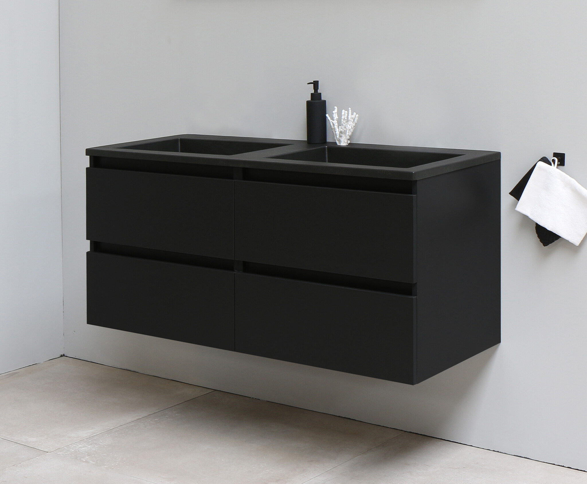 Solidline badkamermeubelset | 120cm | Keramiek | Mat zwart | 2 | Mat zwart | Zonder spiegel | Geassembleerd