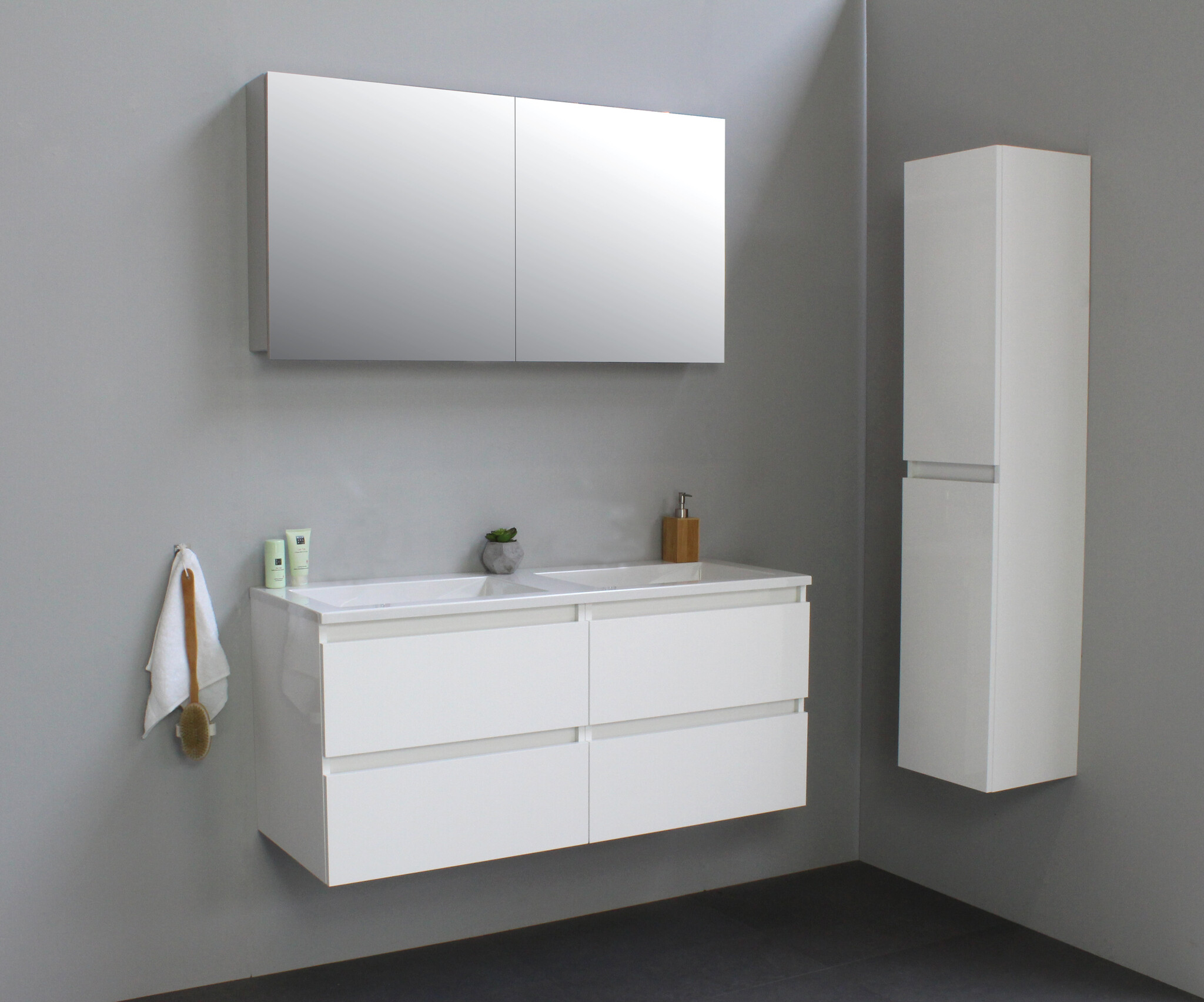 Solidline badkamermeubelset | 120cm | Keramiek | Wit | 0 | Hoogglans wit | Met spiegelkast | Geassembleerd