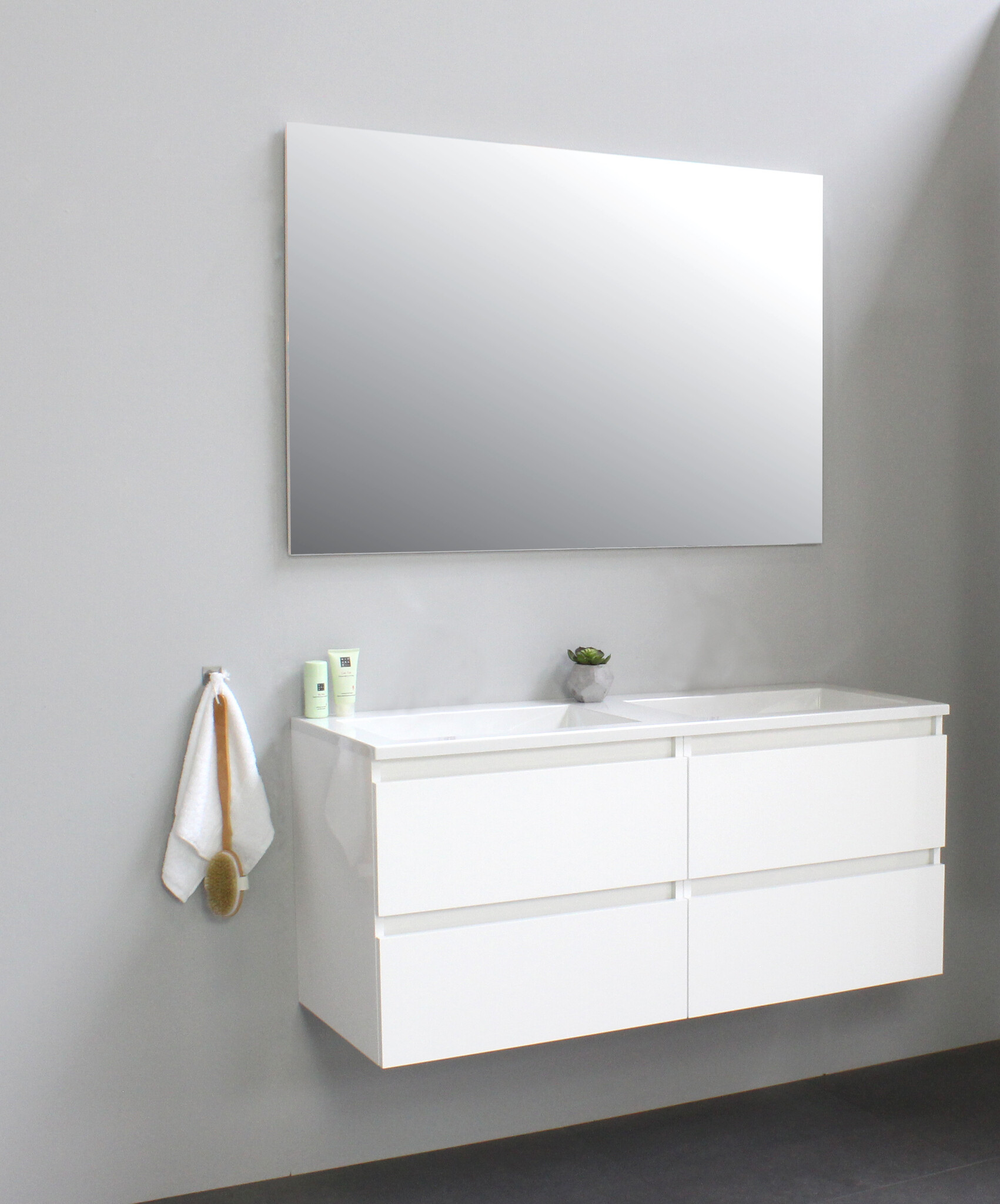 Solidline badkamermeubelset | 120cm | Keramiek | Wit | 0 | Hoogglans wit | Standaard spiegel | Bouwpakket