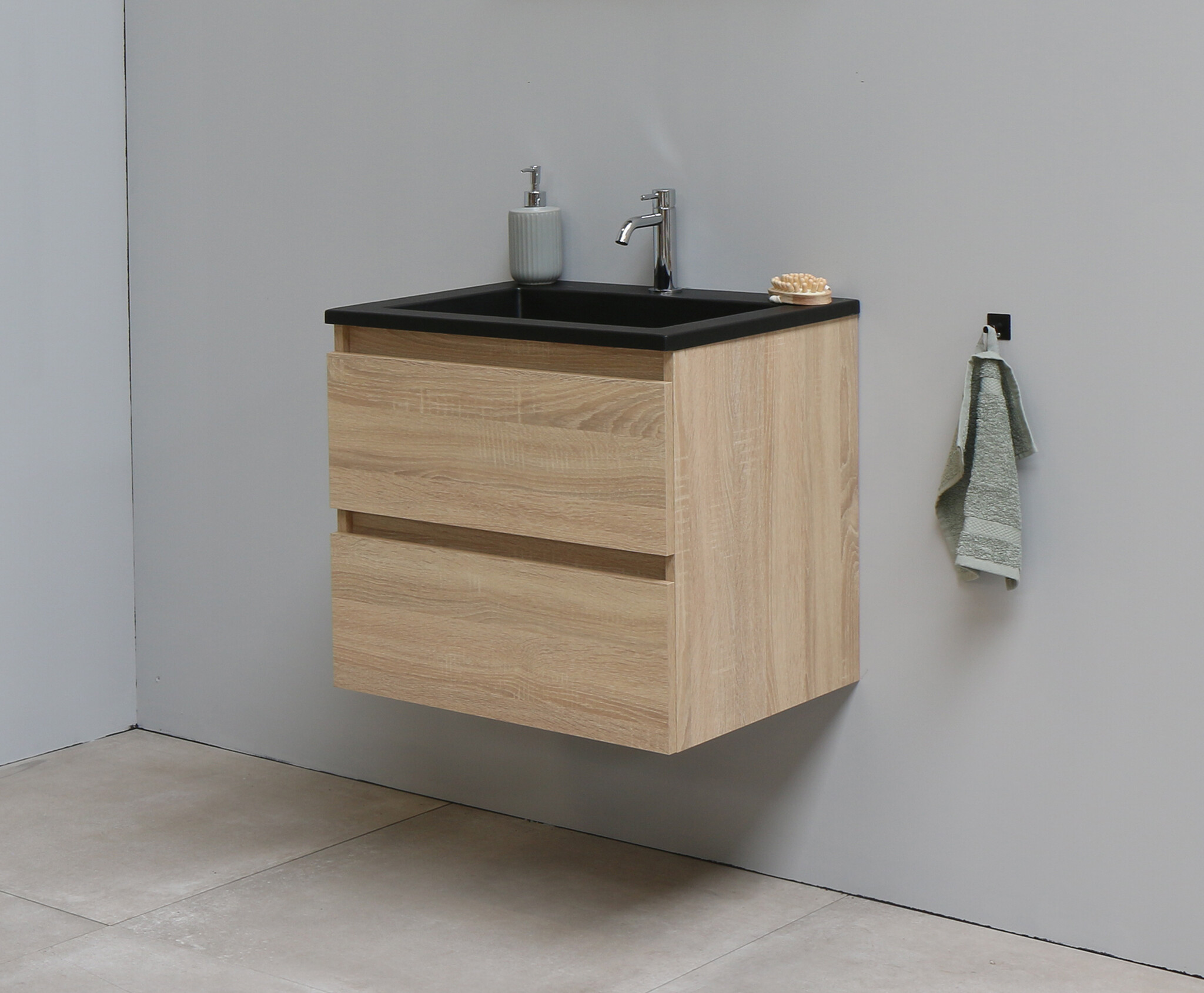 Solidline badkamermeubelset | 60cm | Acryl | Mat zwart | 1 | Eiken | Zonder spiegel | Bouwpakket