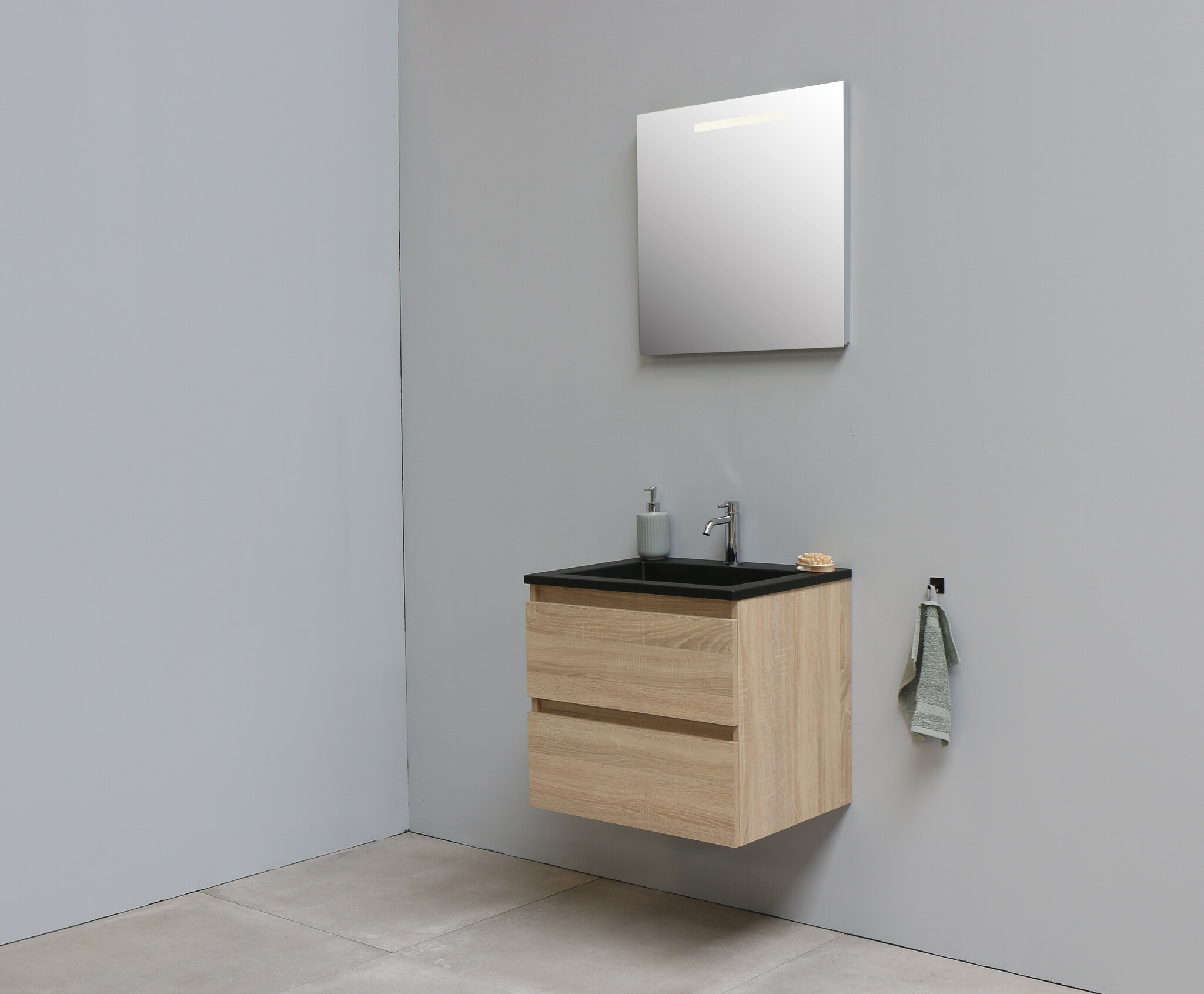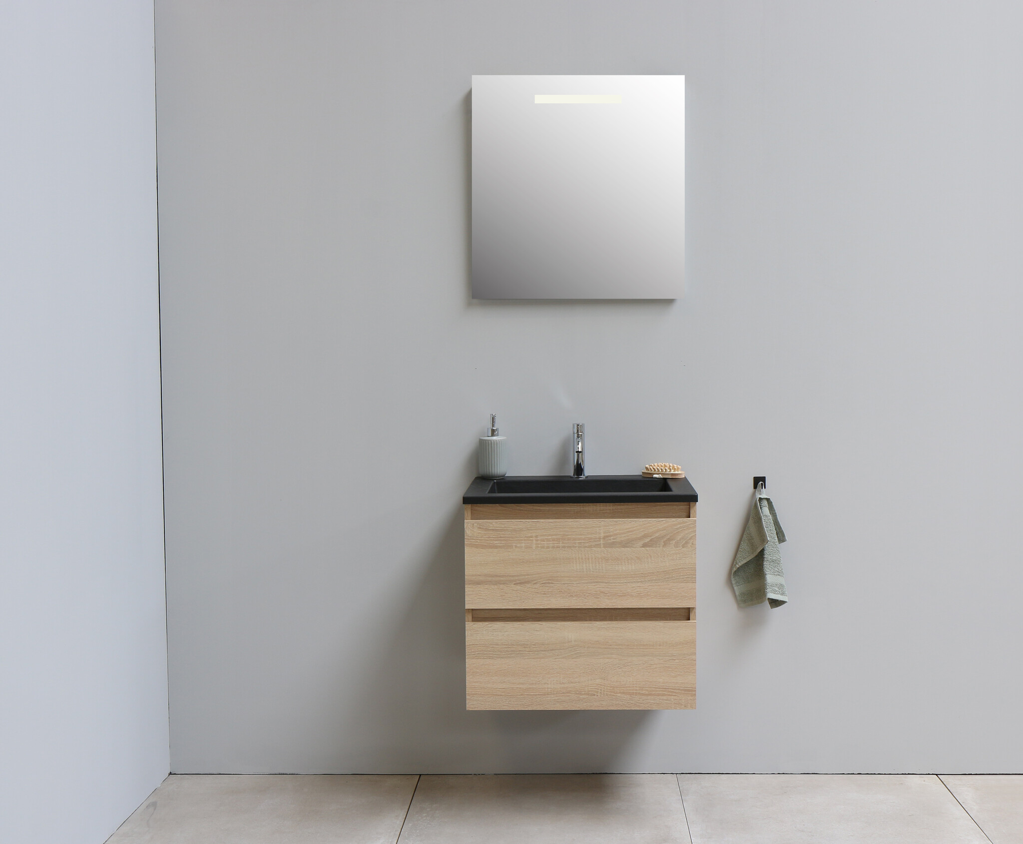 Solidline badkamermeubelset | 60cm | Acryl | Mat zwart | 1 | Eiken | Spiegel met LED verlichting | Bouwpakket