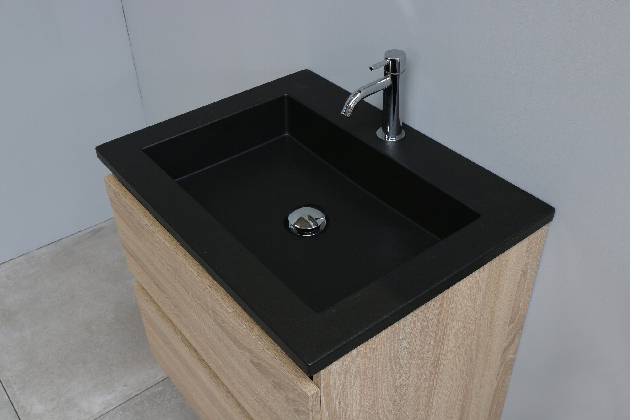 Solidline badkamermeubelset - 60cm - Acryl - Mat zwart - 1 - Eiken - Spiegel met LED verlichting - Bouwpakket