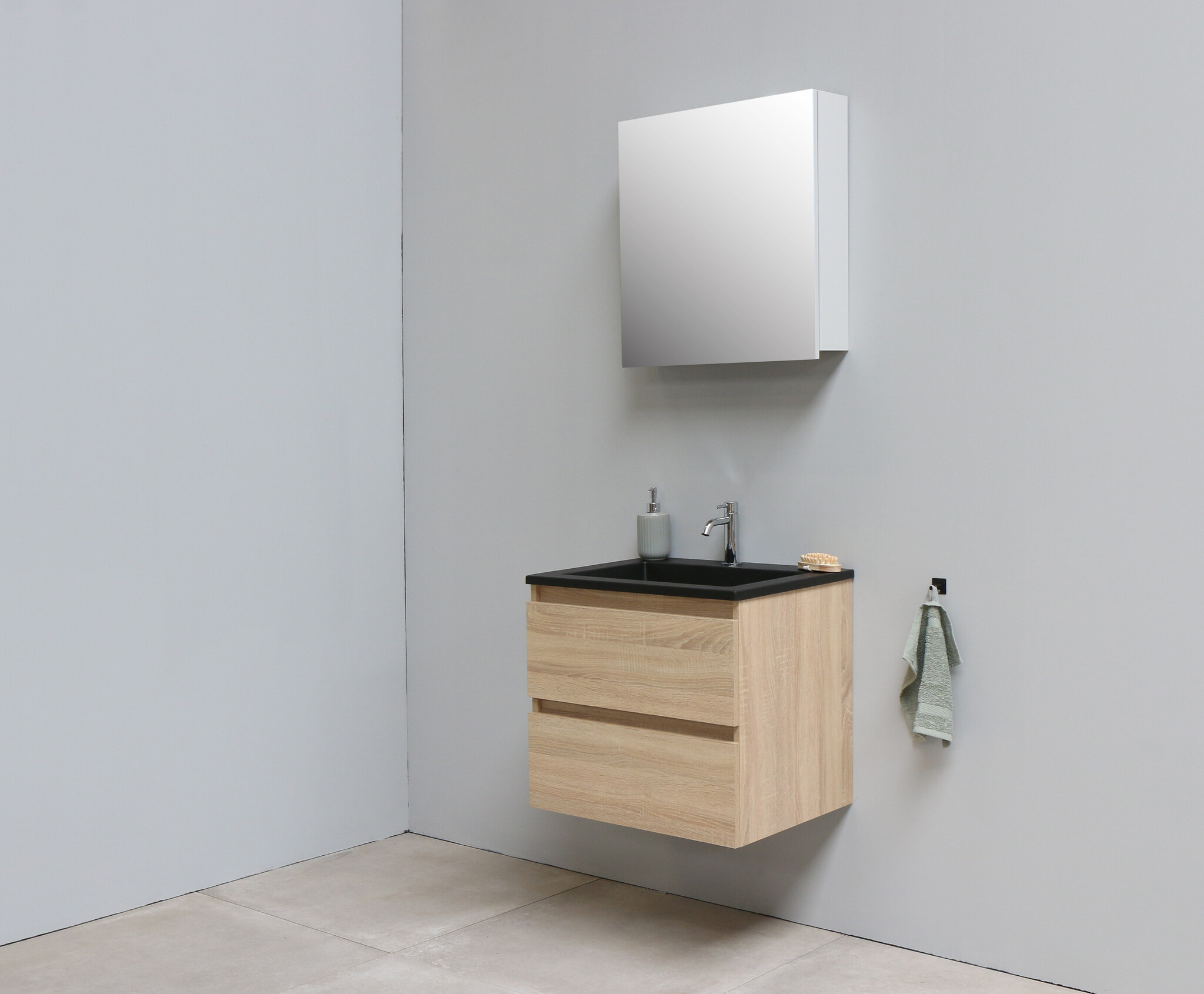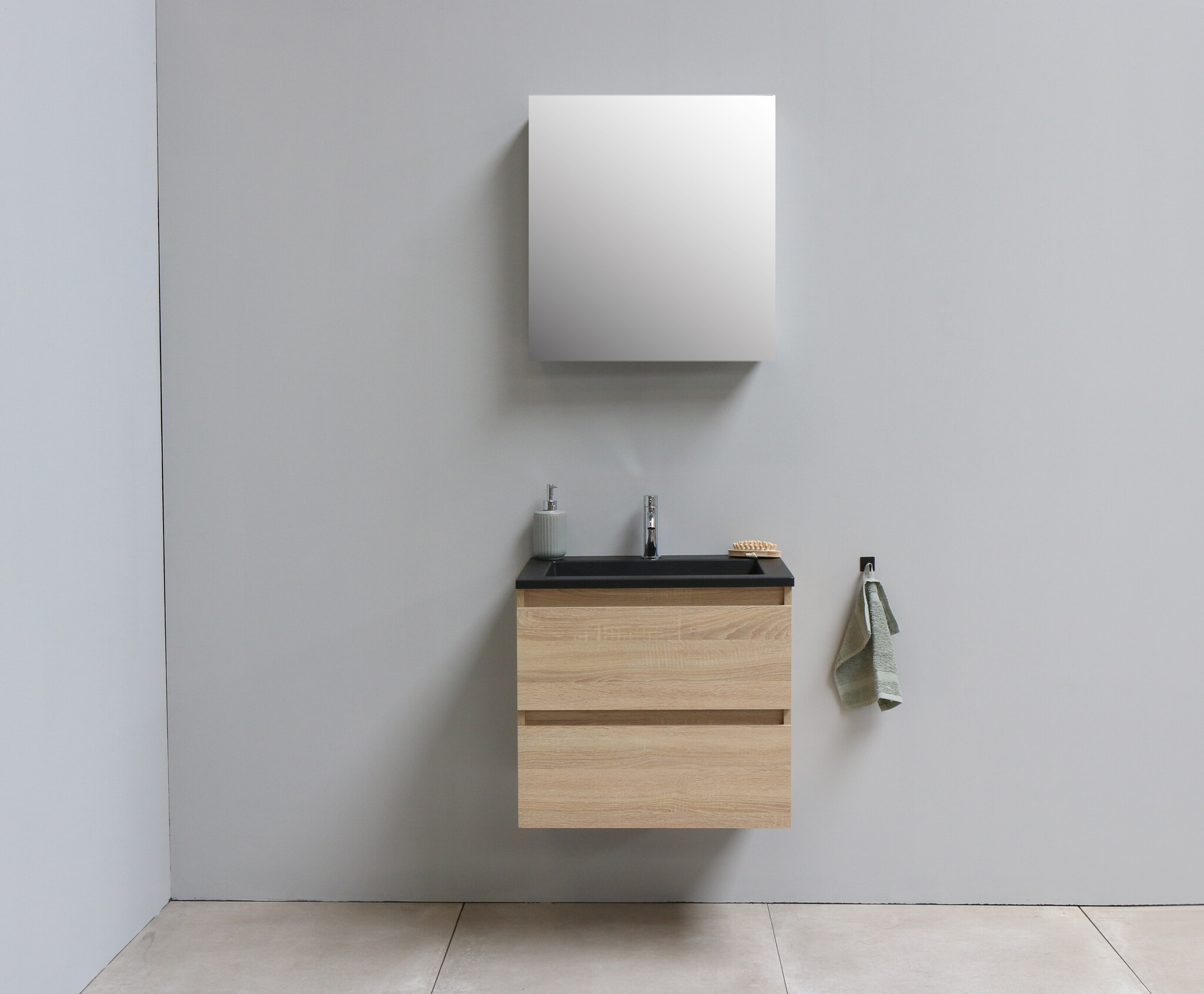 Solidline badkamermeubelset | 60cm | Acryl | Mat zwart | 1 | Eiken | Met spiegelkast | Geassembleerd