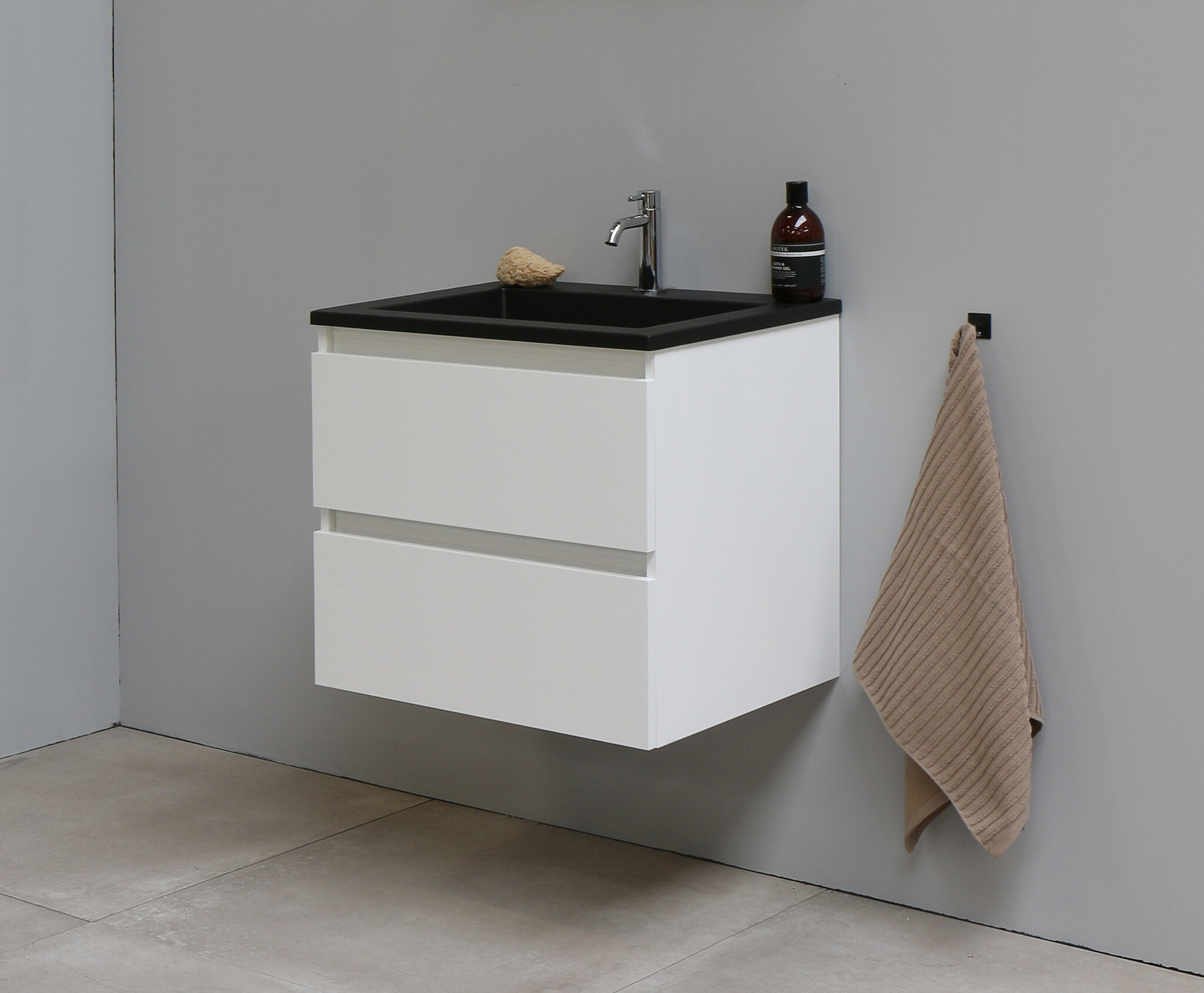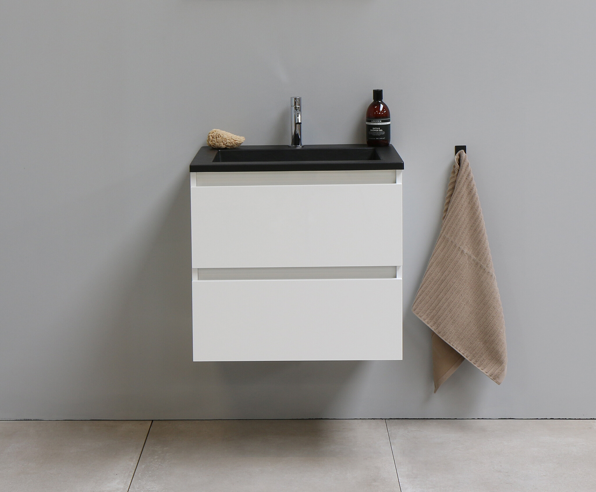 Solidline badkamermeubelset - 60cm - Acryl - Mat zwart - 1 - Hoogglans wit - Zonder spiegel - Geassembleerd