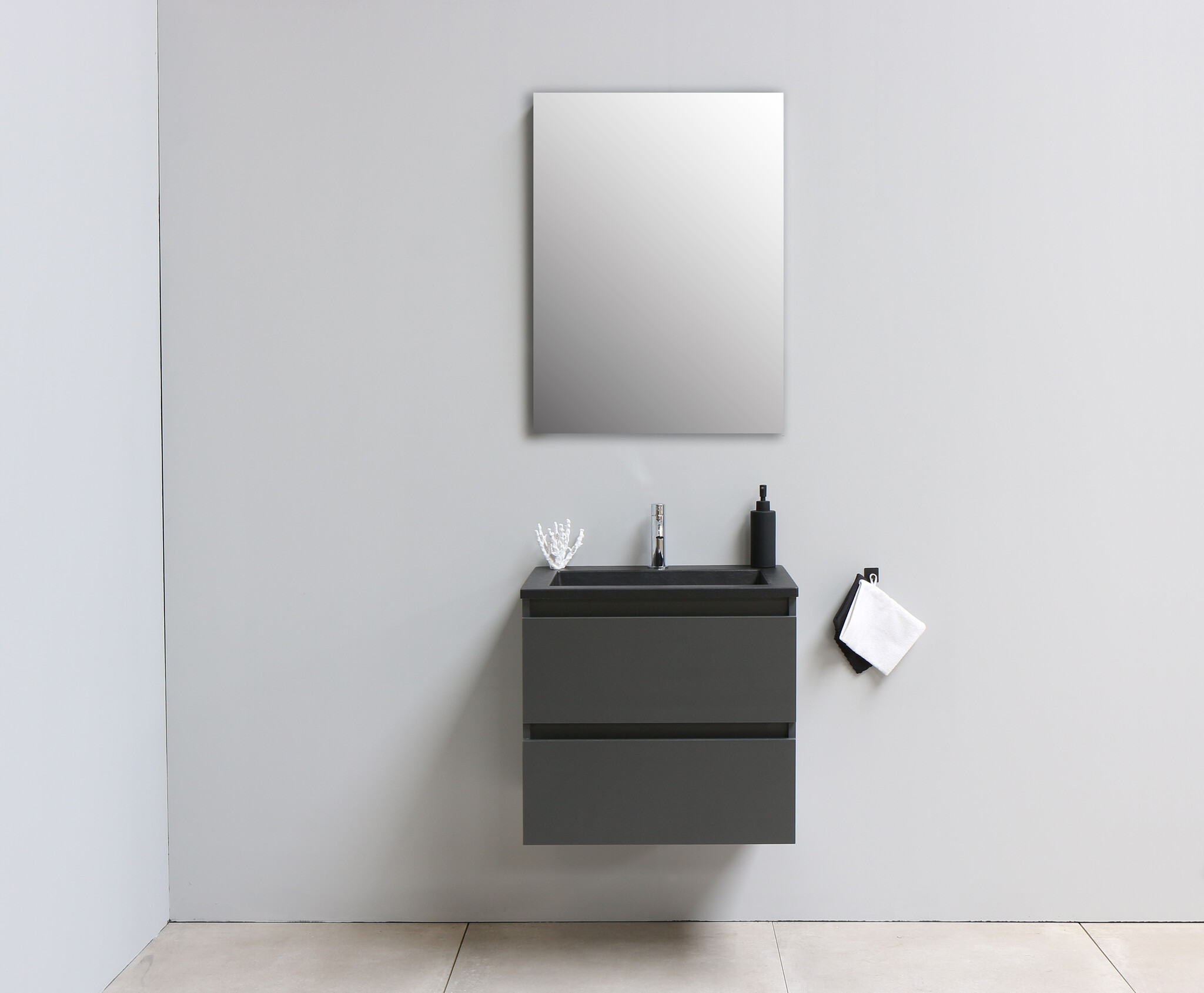 Solidline badkamermeubelset | 60cm | Acryl | Mat zwart | 1 | Mat antraciet | Standaard spiegel | Geassembleerd
