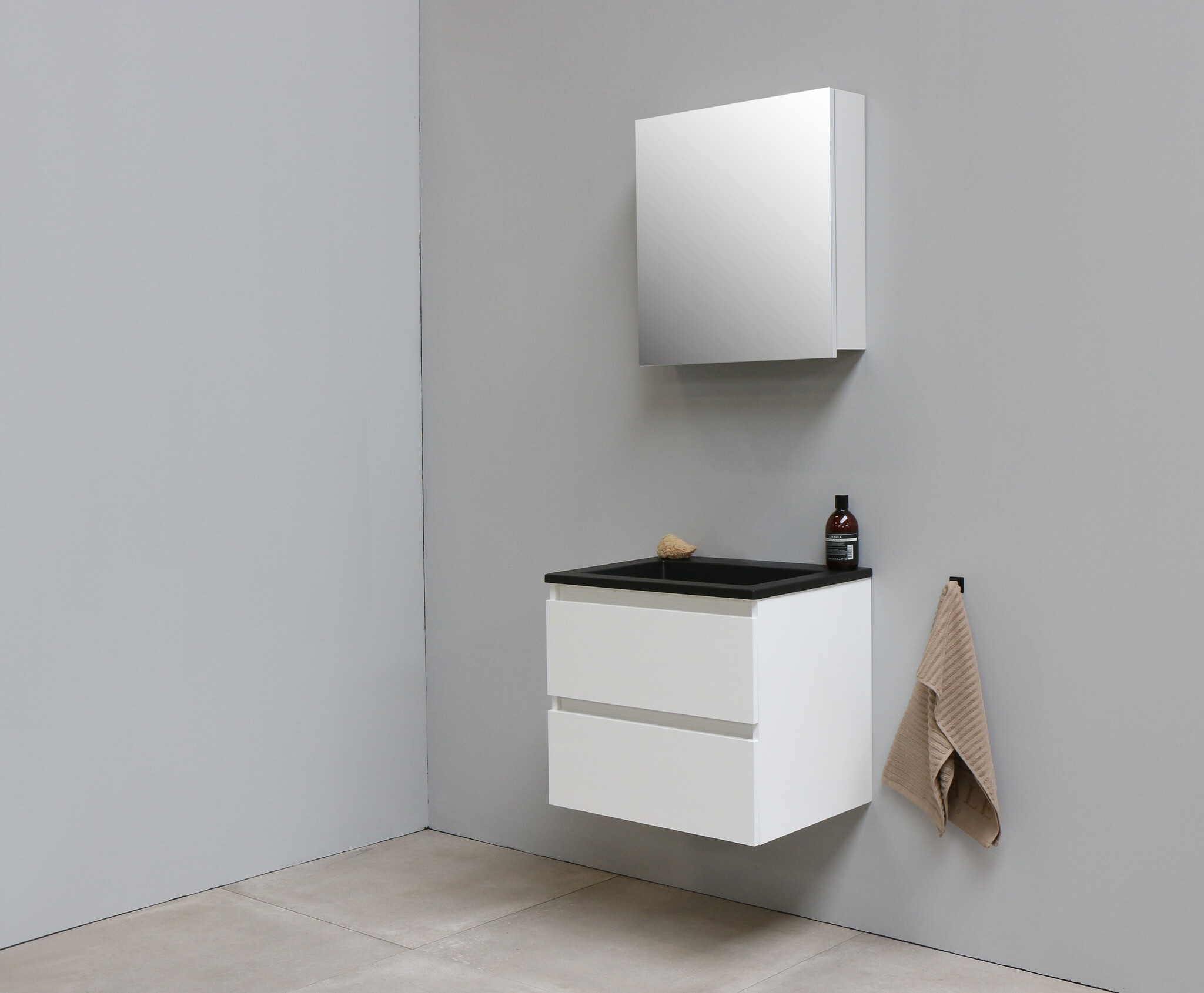 Offerte aanvraag voor Solidline badkamermeubelset | 60cm | Acryl | Mat zwart | 2 | Hoogglans wit | Met spiegelkast | Geassembleerd