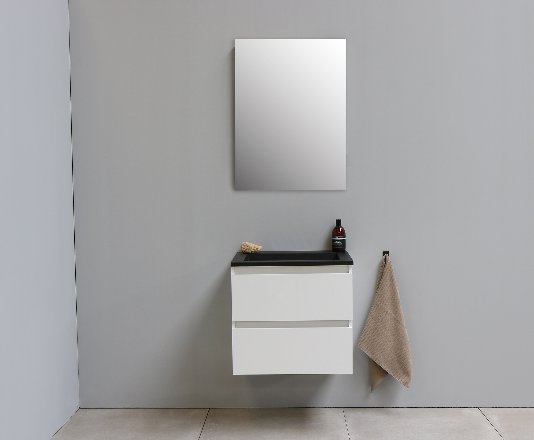 Solidline badkamermeubelset | 60cm | Acryl | Mat zwart | 2 | Hoogglans wit | Standaard spiegel | Bouwpakket