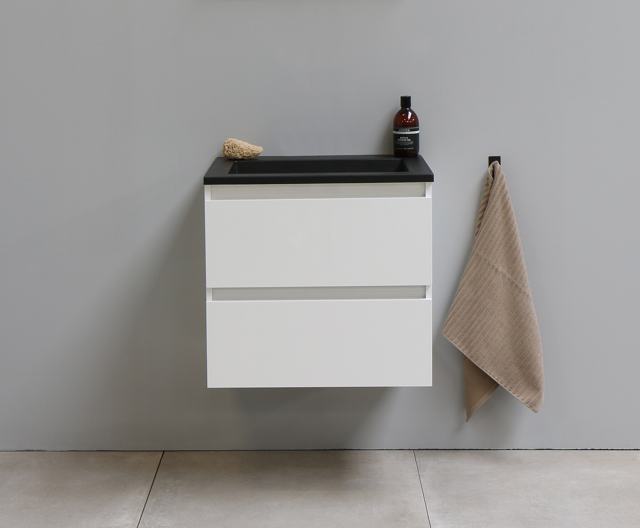 Solidline badkamermeubelset | 60cm | Acryl | Mat zwart | 2 | Hoogglans wit | Zonder spiegel | Bouwpakket