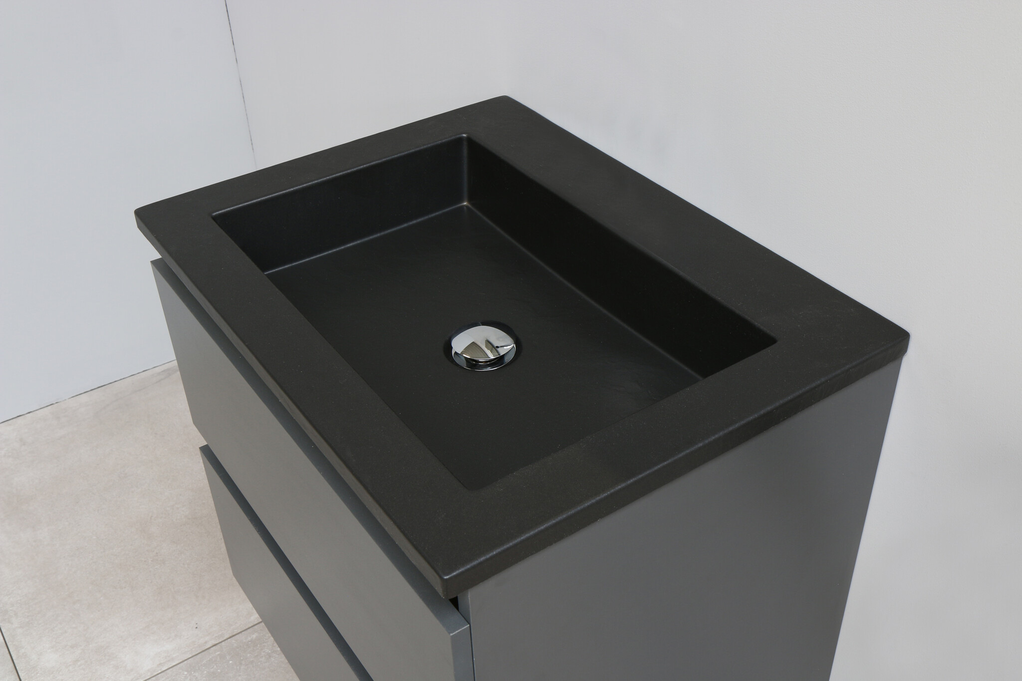 Solidline badkamermeubelset | 60cm | Acryl | Mat zwart | 2 | Mat antraciet | Spiegel met LED verlichting | Geassembleerd