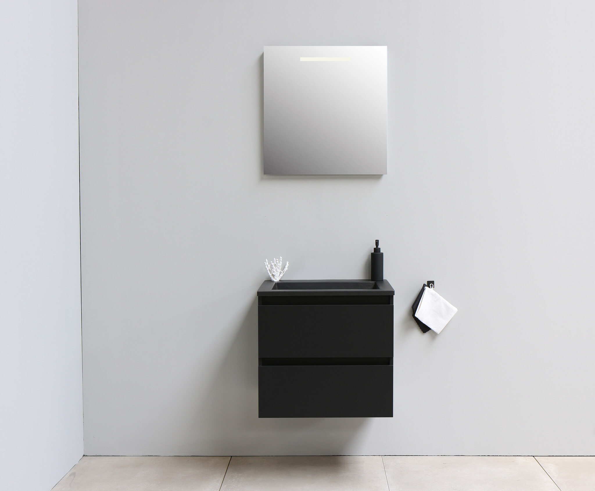 Solidline badkamermeubelset - 60cm - Acryl - Mat zwart - 2 - Mat zwart - Spiegel met LED verlichting - Geassembleerd