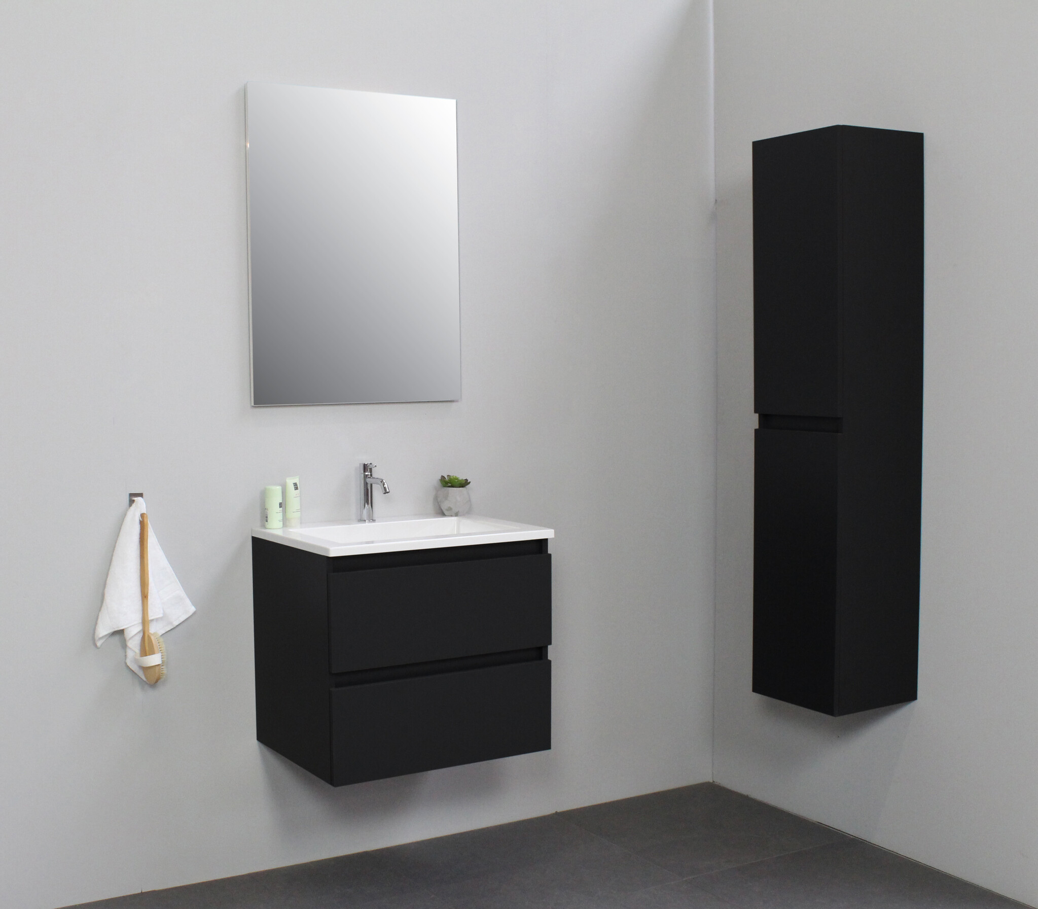 Solidline badkamermeubelset | 60cm | Acryl | Wit | 1 | Mat zwart | Zonder spiegel | Bouwpakket