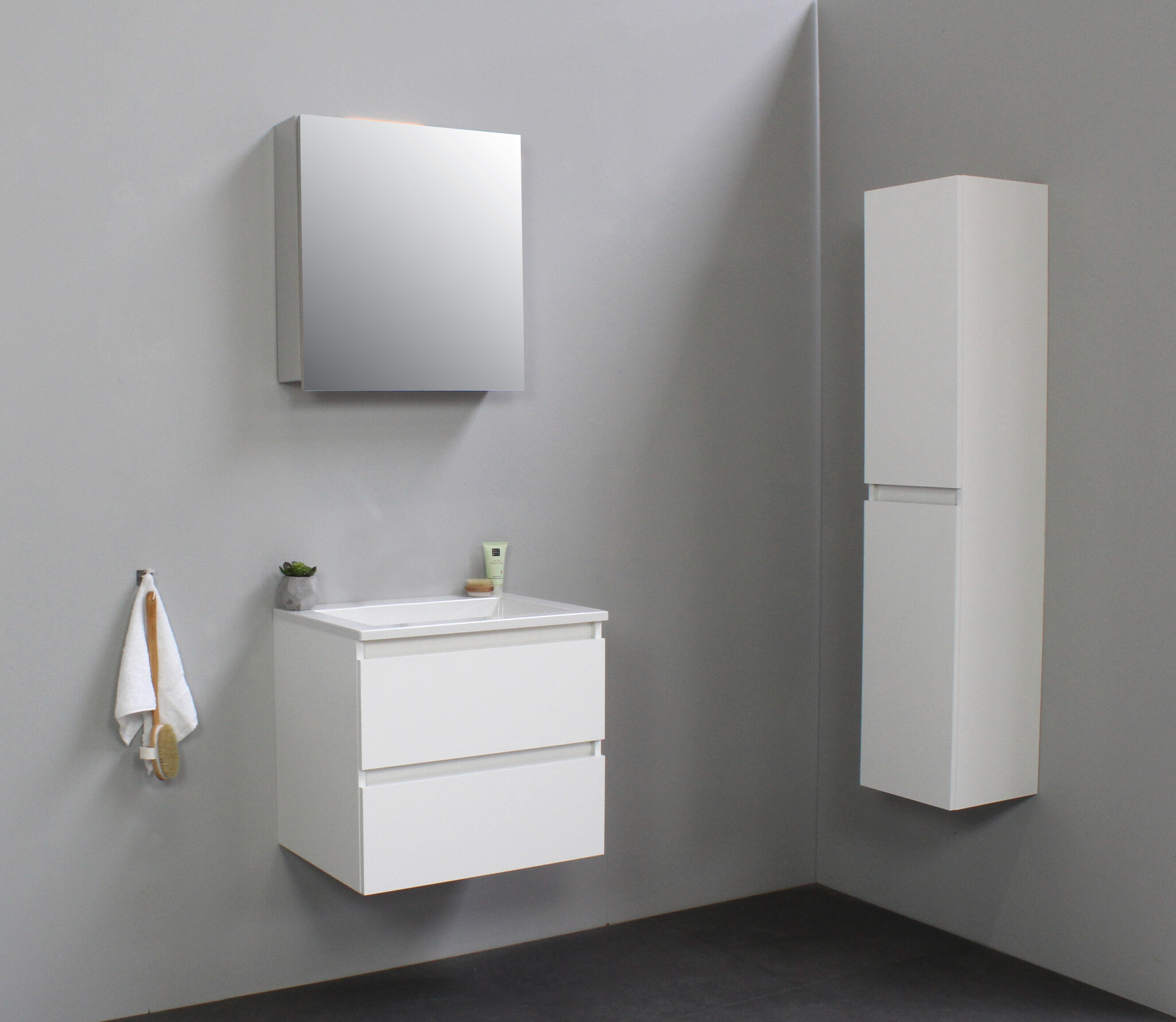 Solidline badkamermeubelset | 60cm | Acryl | Wit | 0 | Hoogglans wit | Met spiegelkast | Geassembleerd