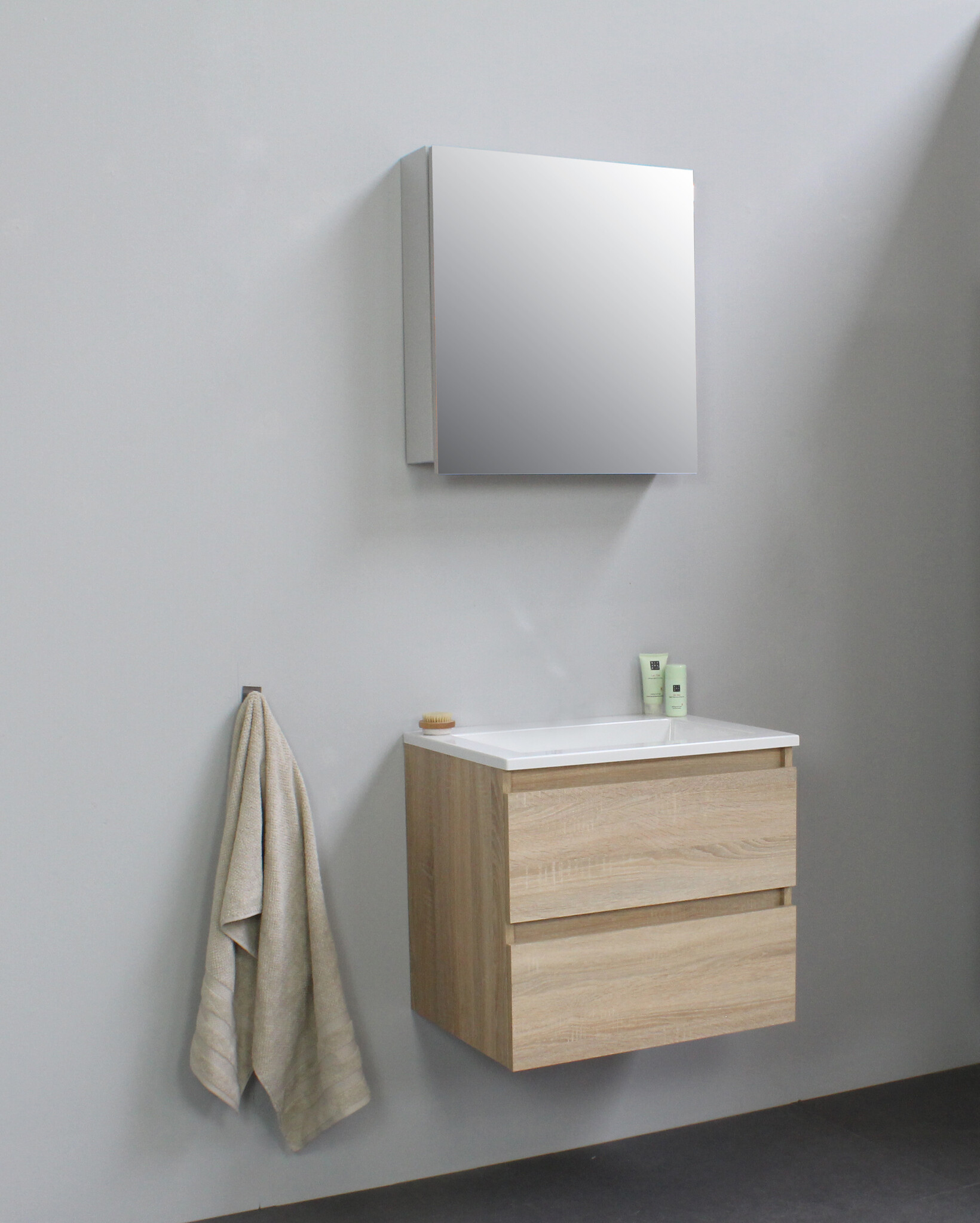 Solidline badkamermeubelset | 60cm | Acryl | Wit | 2 | Eiken | Met spiegelkast | Bouwpakket