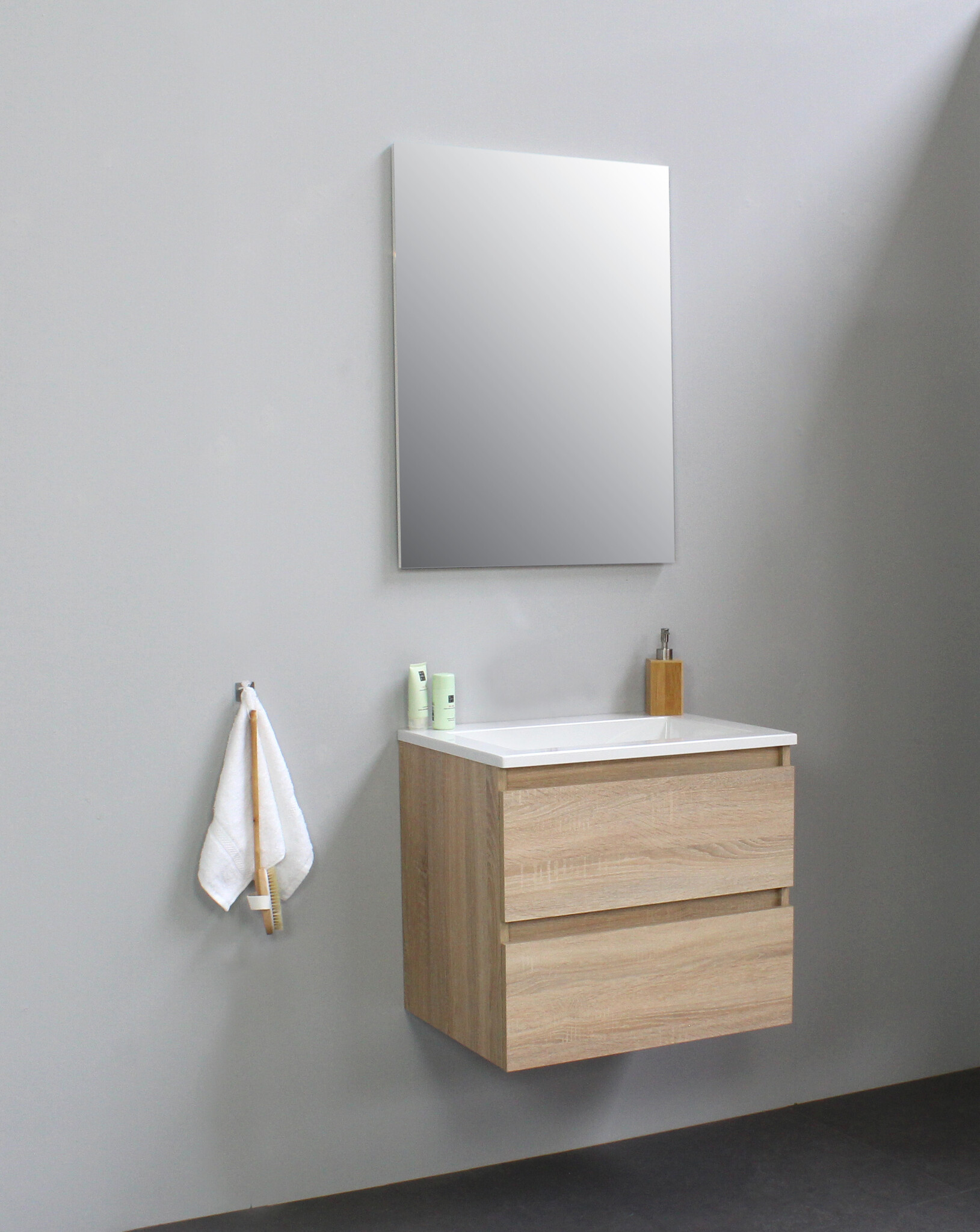 Offerte aanvraag voor Solidline badkamermeubelset | 60cm | Acryl | Wit | 2 | Eiken | Standaard spiegel | Geassembleerd