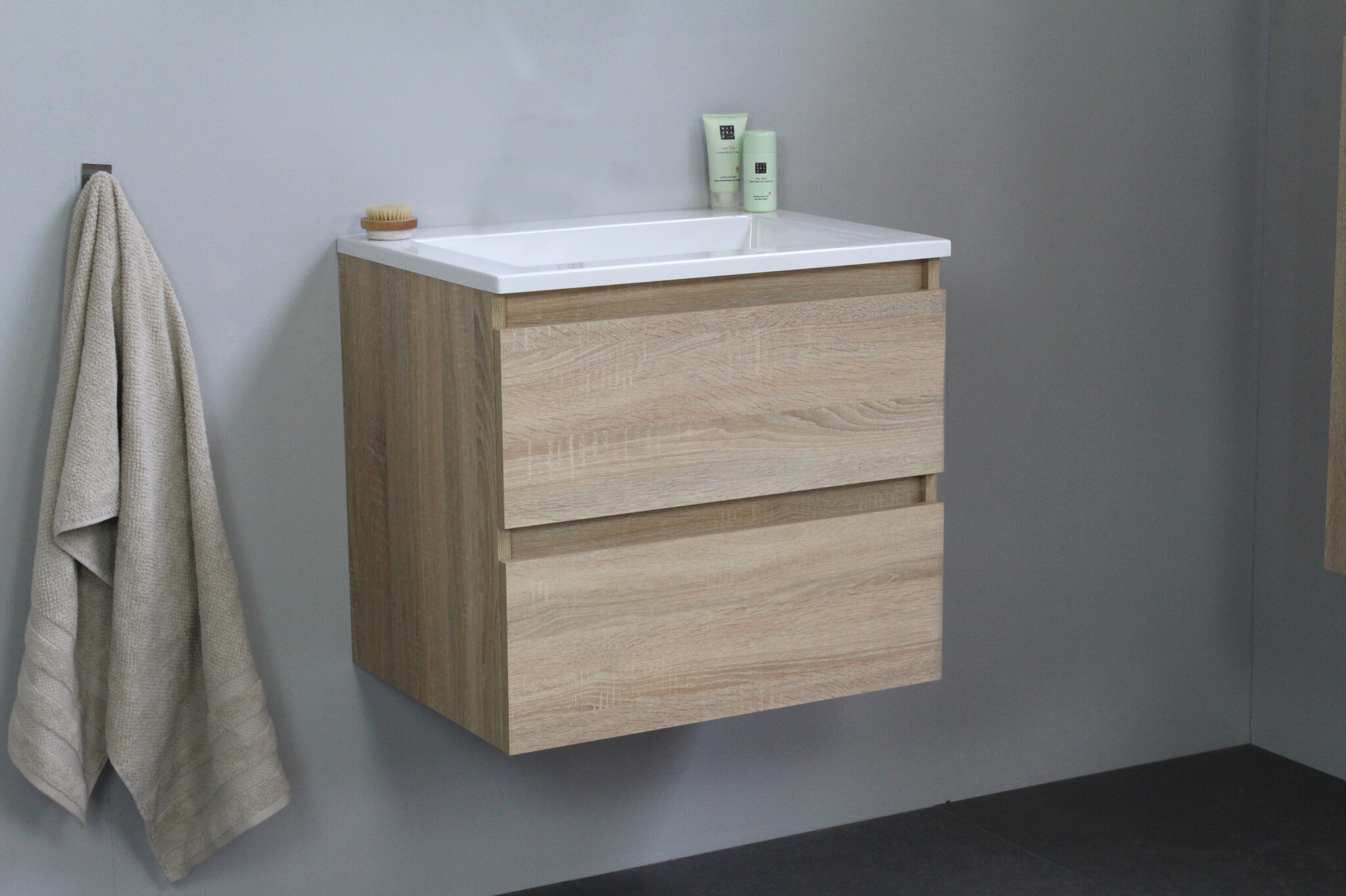 Solidline badkamermeubelset - 60cm - Acryl - Wit - 2 - Eiken - Zonder spiegel - Bouwpakket