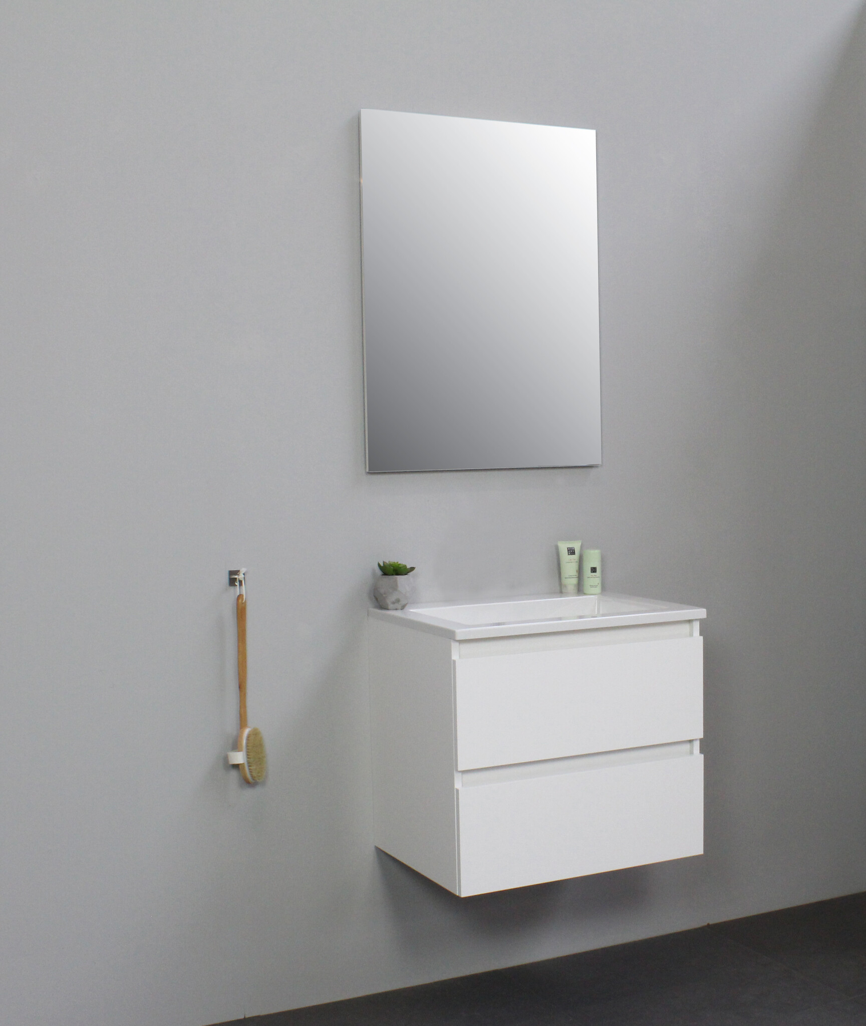 Solidline badkamermeubelset | 60cm | Acryl | Wit | 2 | Hoogglans wit | Standaard spiegel | Geassembleerd