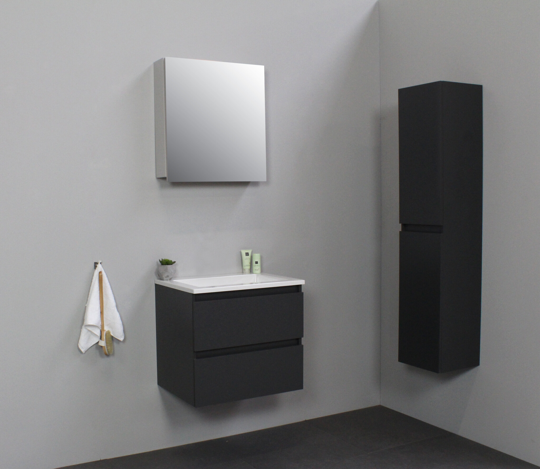 Solidline badkamermeubelset | 60cm | Acryl | Wit | 2 | Mat antraciet | Met spiegelkast | Bouwpakket