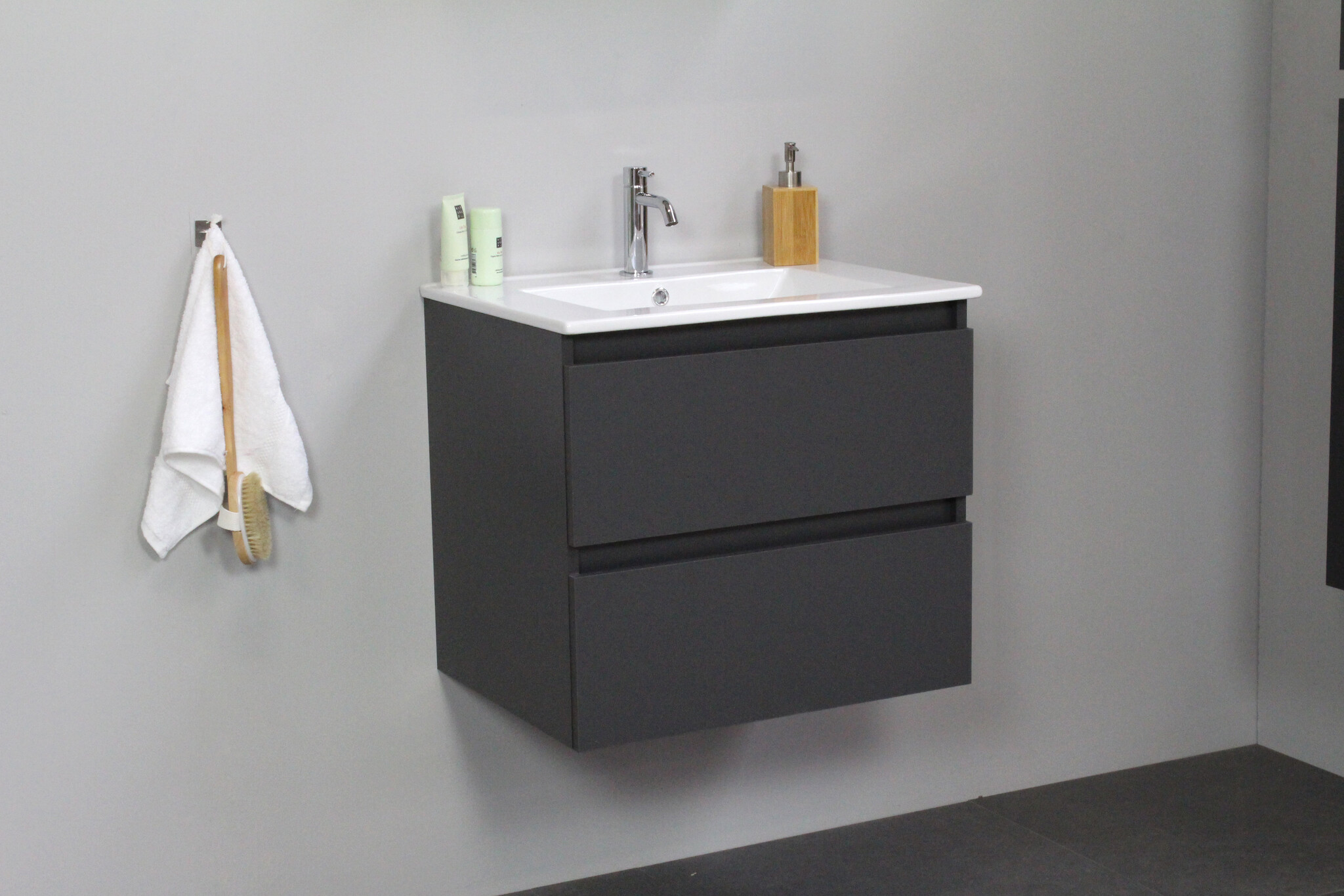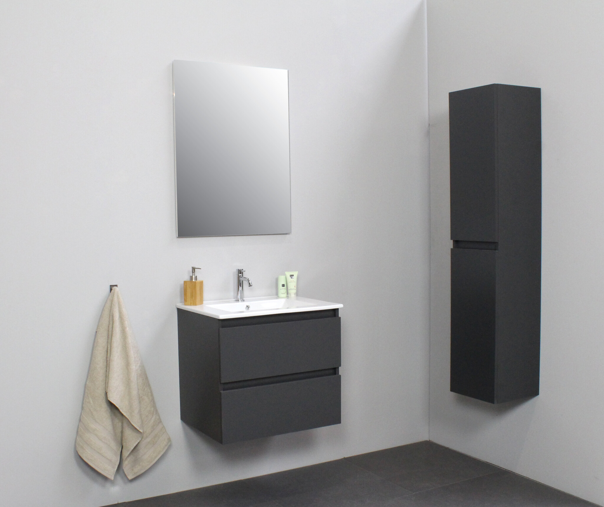 Offerte aanvraag voor Solidline badkamermeubelset | 60cm | Keramiek | Wit | 1 | Mat antraciet | Zonder spiegel | Bouwpakket