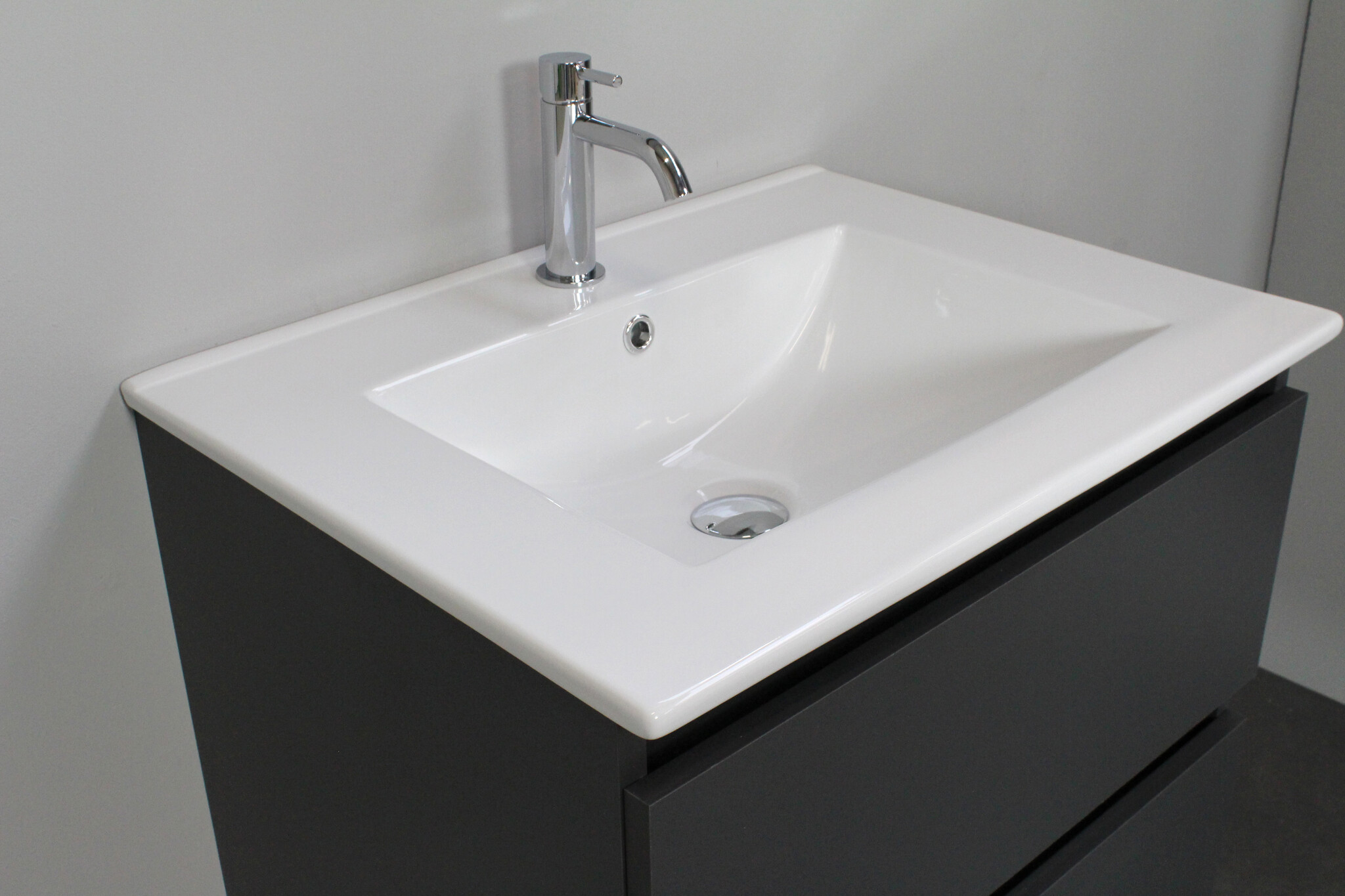 Solidline badkamermeubelset - 60cm - Keramiek - Wit - 1 - Mat antraciet - Zonder spiegel - Bouwpakket