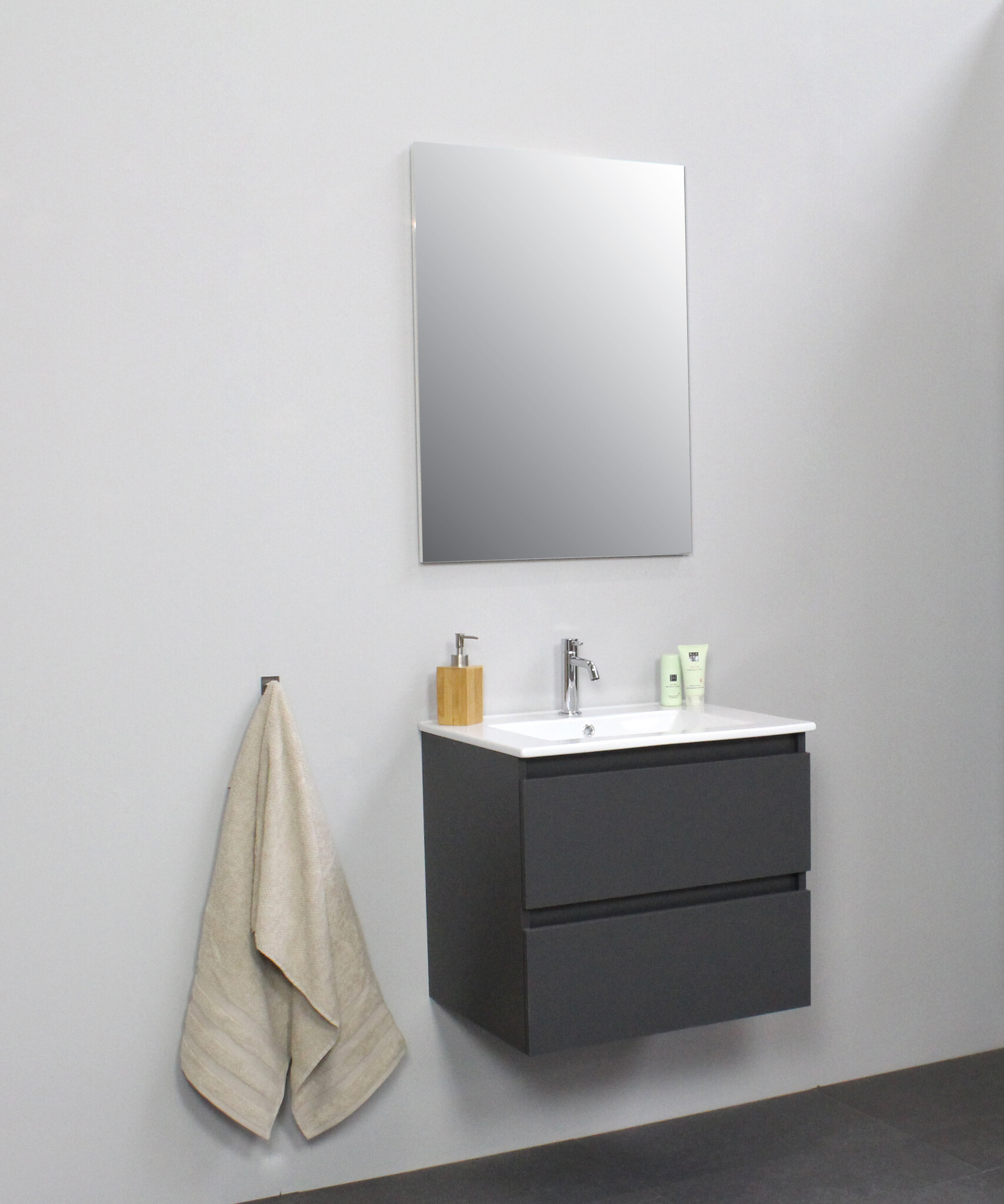 Offerte aanvraag voor Solidline badkamermeubelset | 60cm | Keramiek | Wit | 1 | Mat antraciet | Standaard spiegel | Bouwpakket