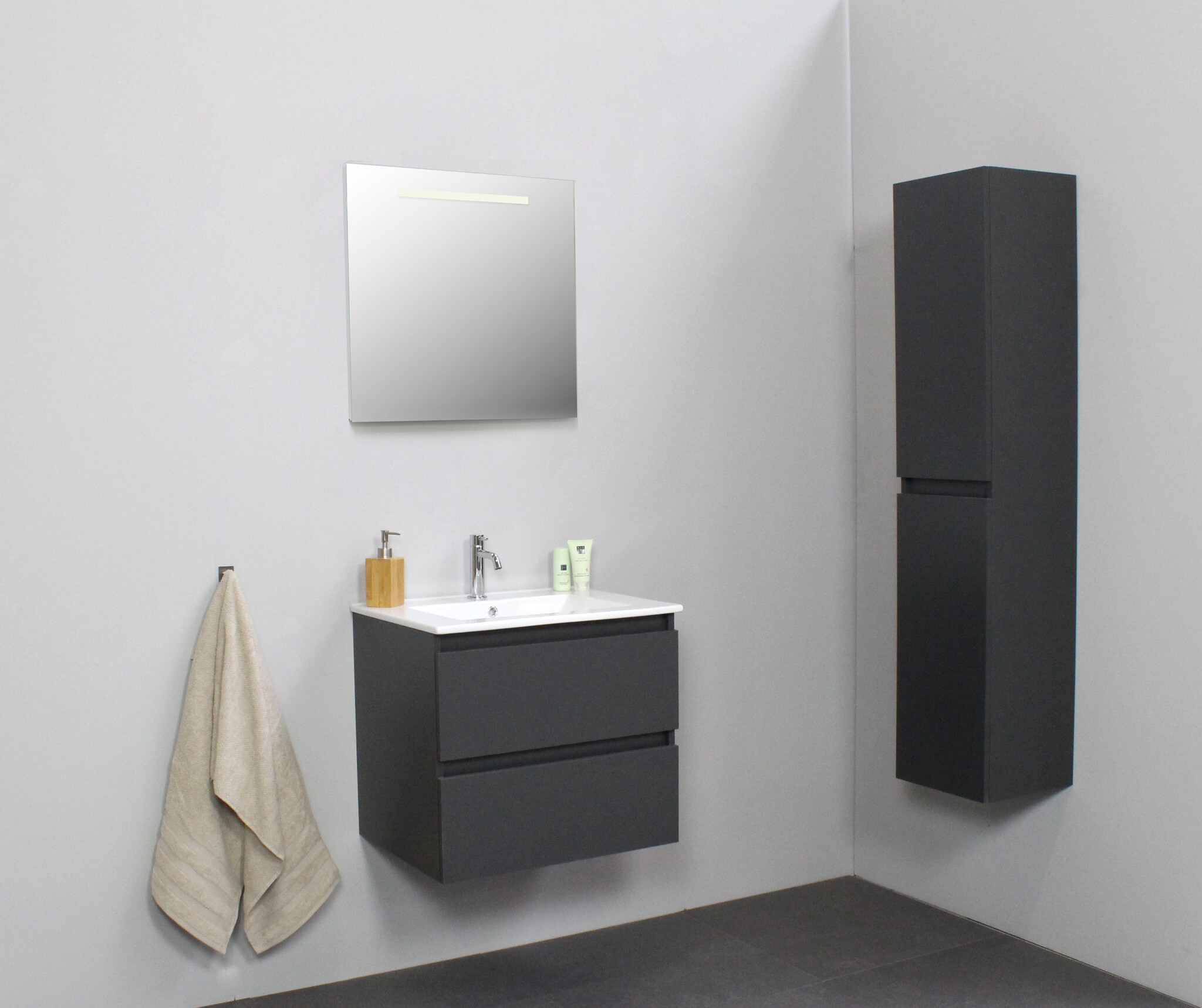 Solidline badkamermeubelset | 60cm | Keramiek | Wit | 1 | Mat antraciet | Spiegel met LED verlichting | Bouwpakket