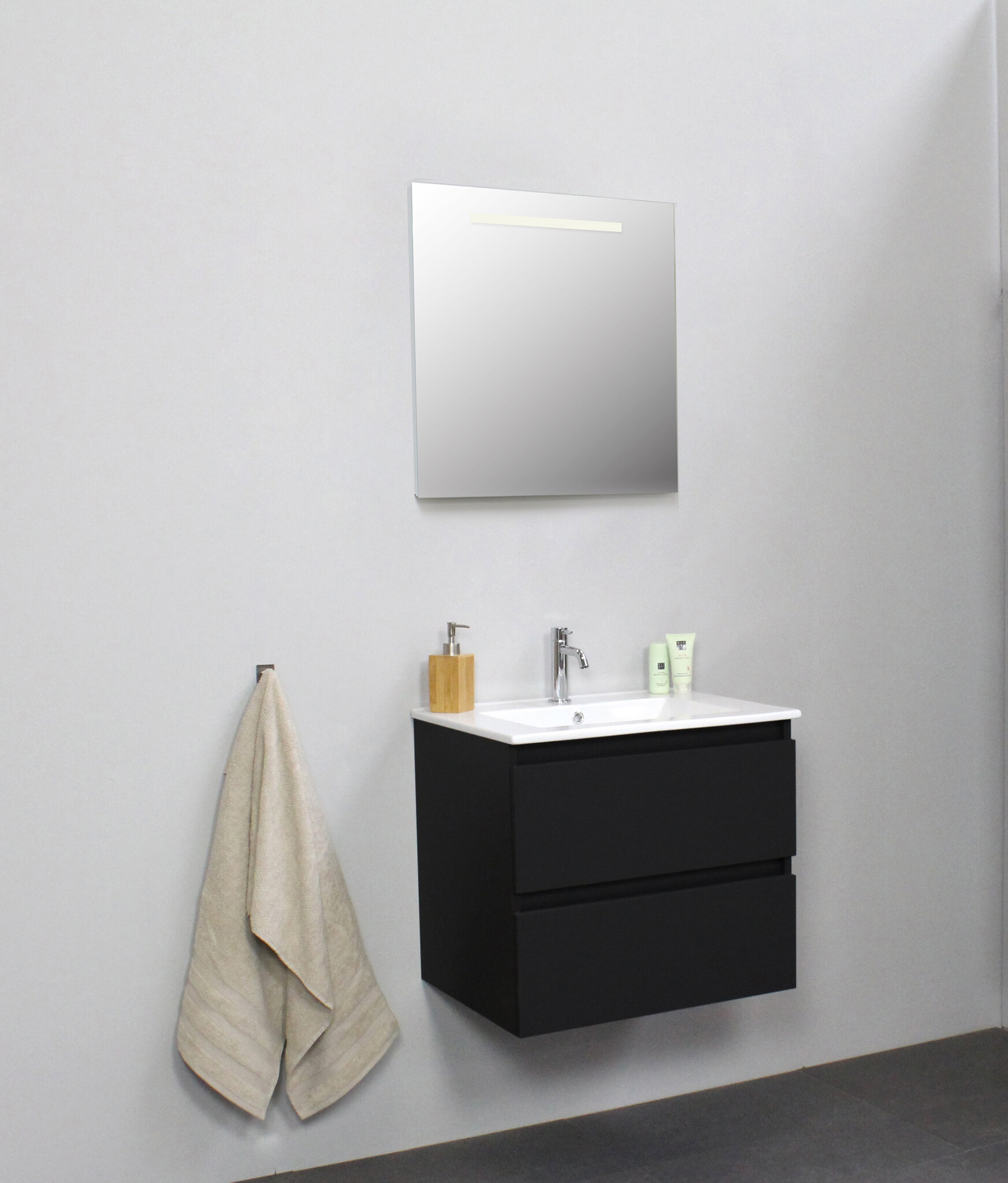 Solidline badkamermeubelset | 60cm | Keramiek | Wit | 1 | Mat zwart | Spiegel met LED verlichting | Bouwpakket