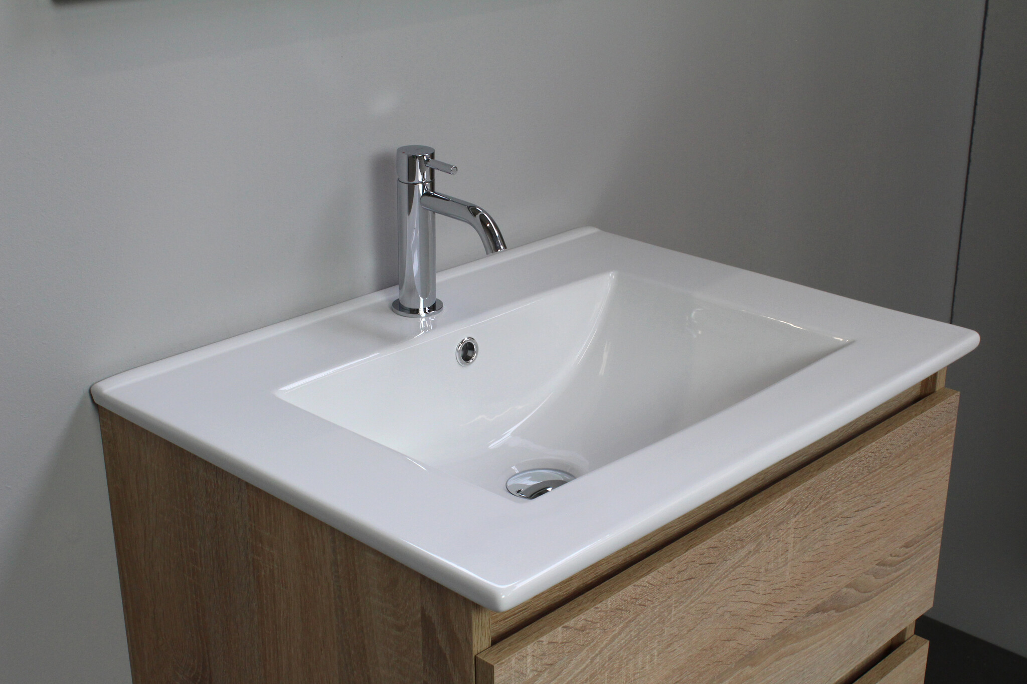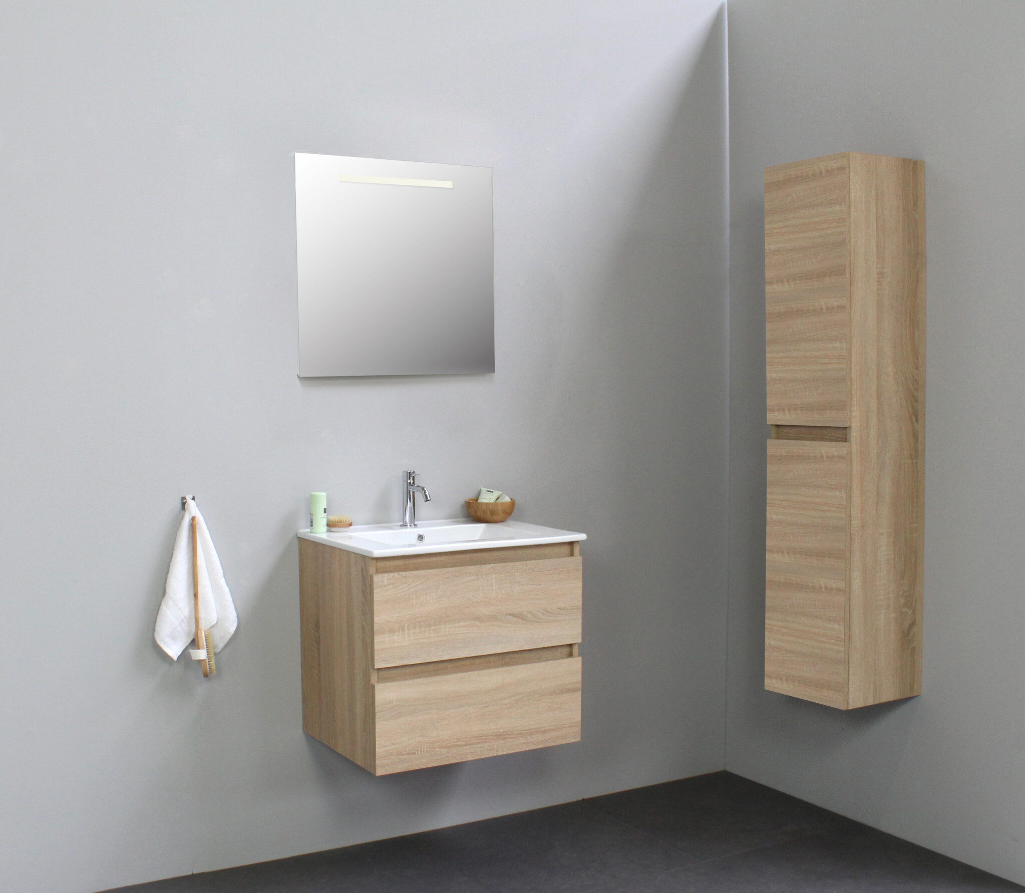 Solidline badkamermeubelset | 60cm | Keramiek | Wit | 1 | Eiken | Spiegel met LED verlichting | Geassembleerd