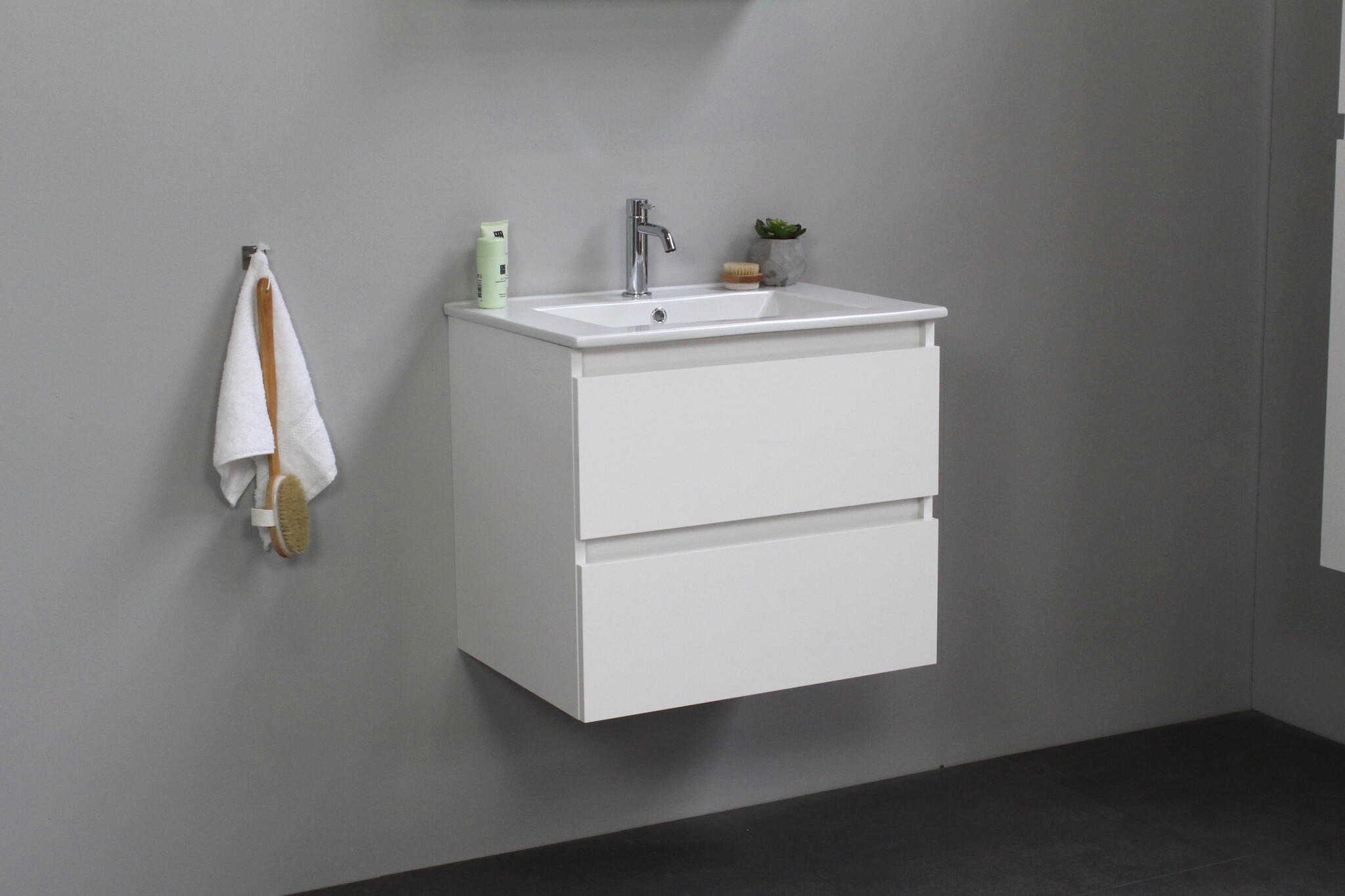 Offerte aanvraag voor Solidline badkamermeubelset | 60cm | Keramiek | Wit | 1 | Hoogglans wit | Zonder spiegel | Geassembleerd