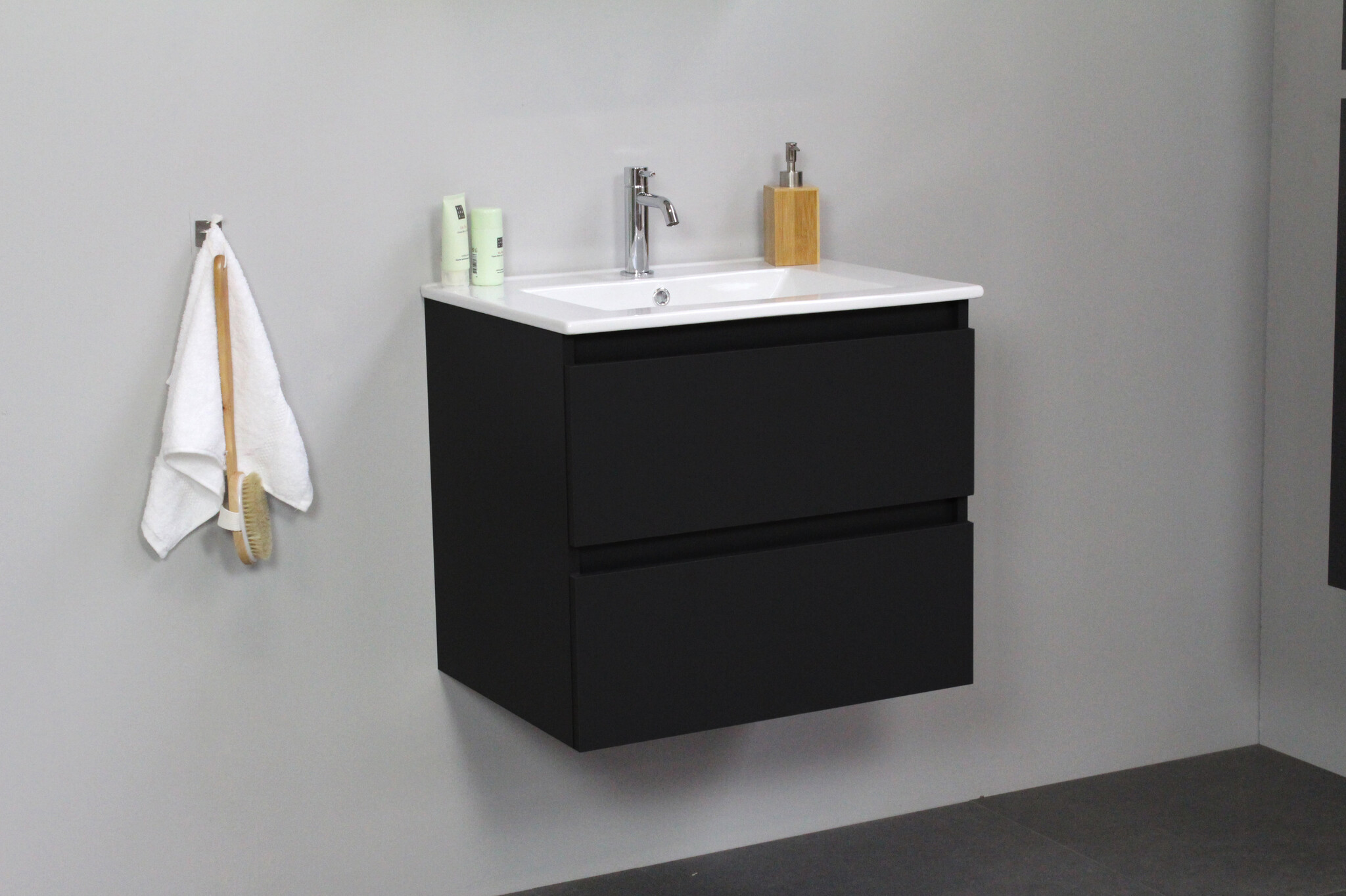 Solidline badkamermeubelset - 60cm - Keramiek - Wit - 1 - Mat zwart - Zonder spiegel - Geassembleerd