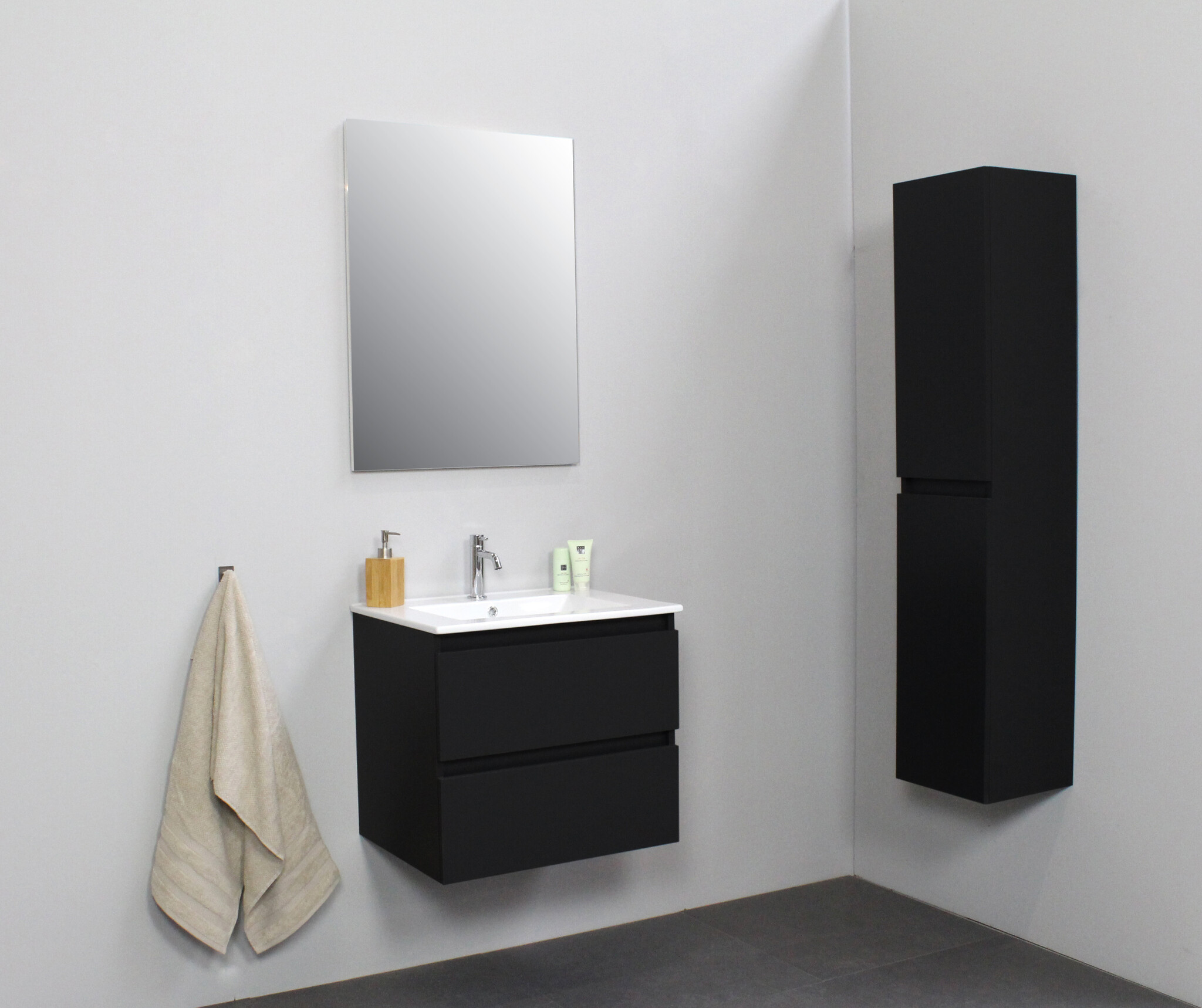 Solidline badkamermeubelset | 60cm | Keramiek | Wit | 1 | Mat zwart | Standaard spiegel | Geassembleerd