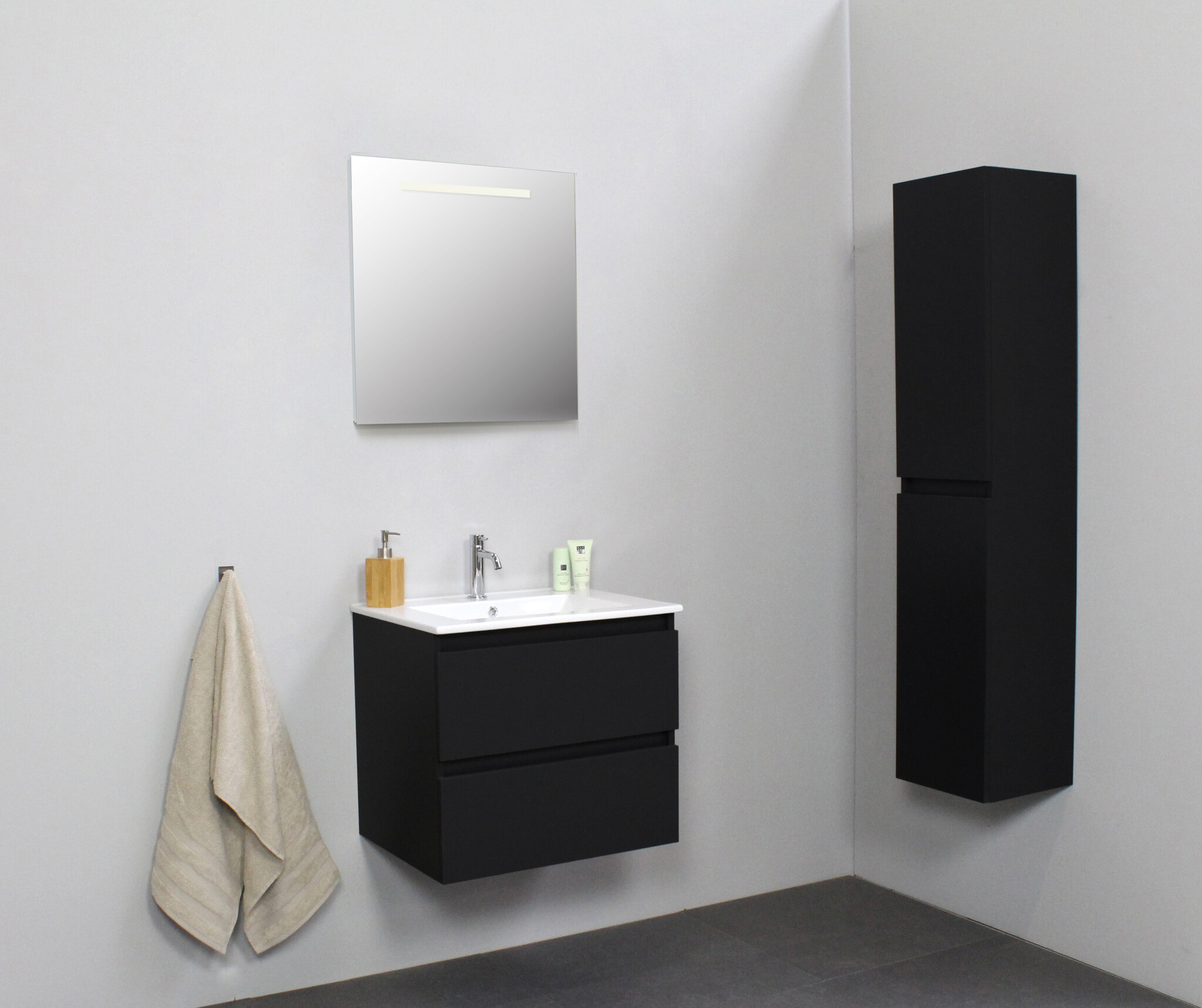 Solidline badkamermeubelset | 60cm | Keramiek | Wit | 1 | Mat zwart | Spiegel met LED verlichting | Geassembleerd