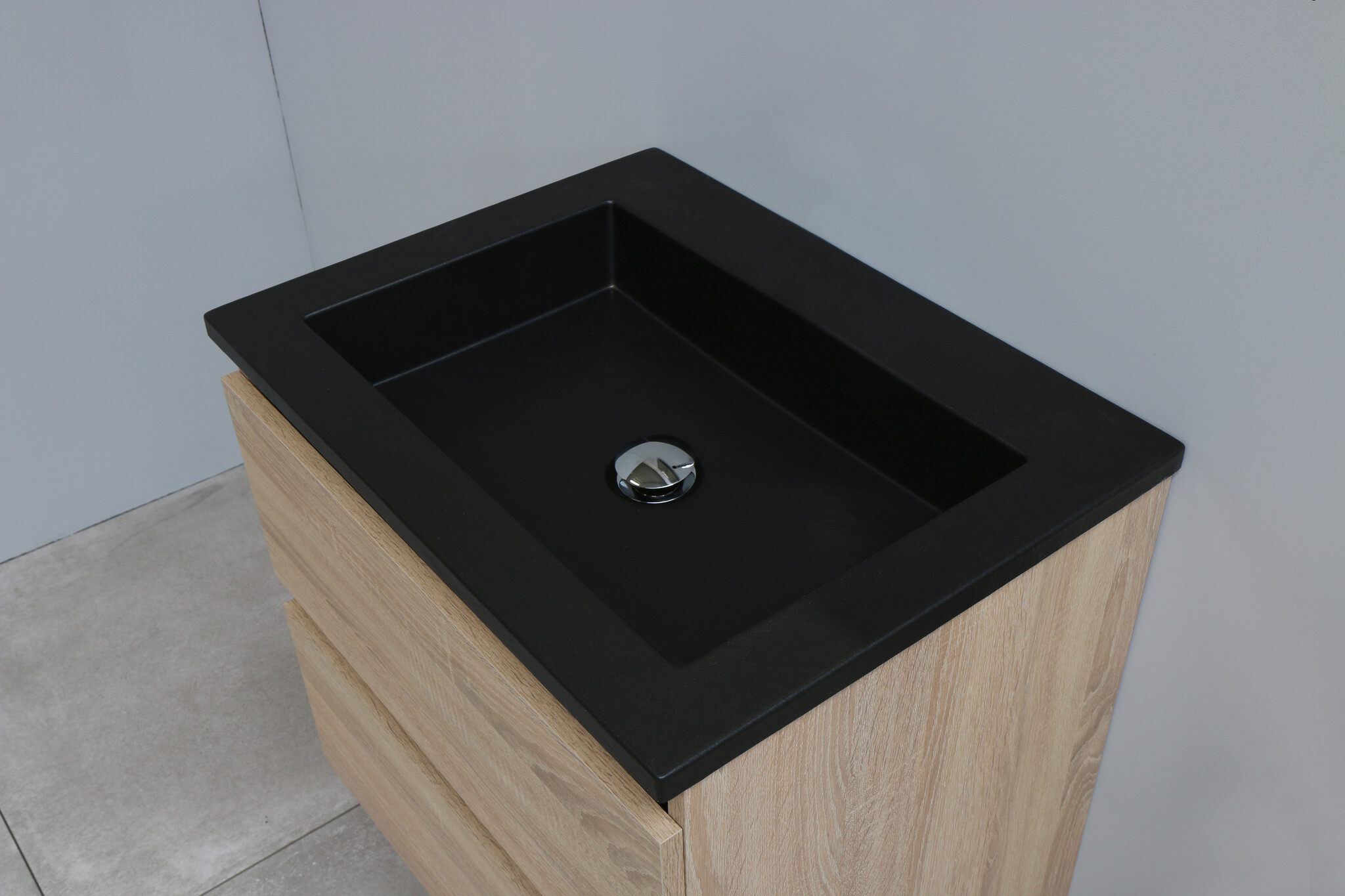 Solidline badkamermeubelset | 60cm | Keramiek | Mat zwart | 1 | Eiken | Zonder spiegel | Geassembleerd