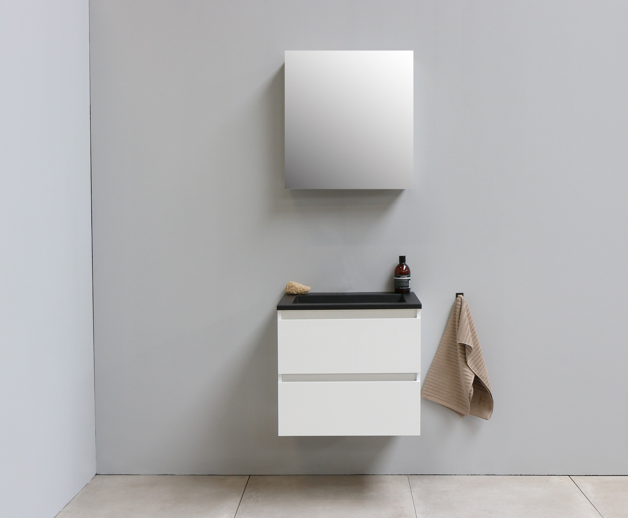 Solidline badkamermeubelset | 60cm | Keramiek | Mat zwart | 1 | Hoogglans wit | Met spiegelkast | Geassembleerd