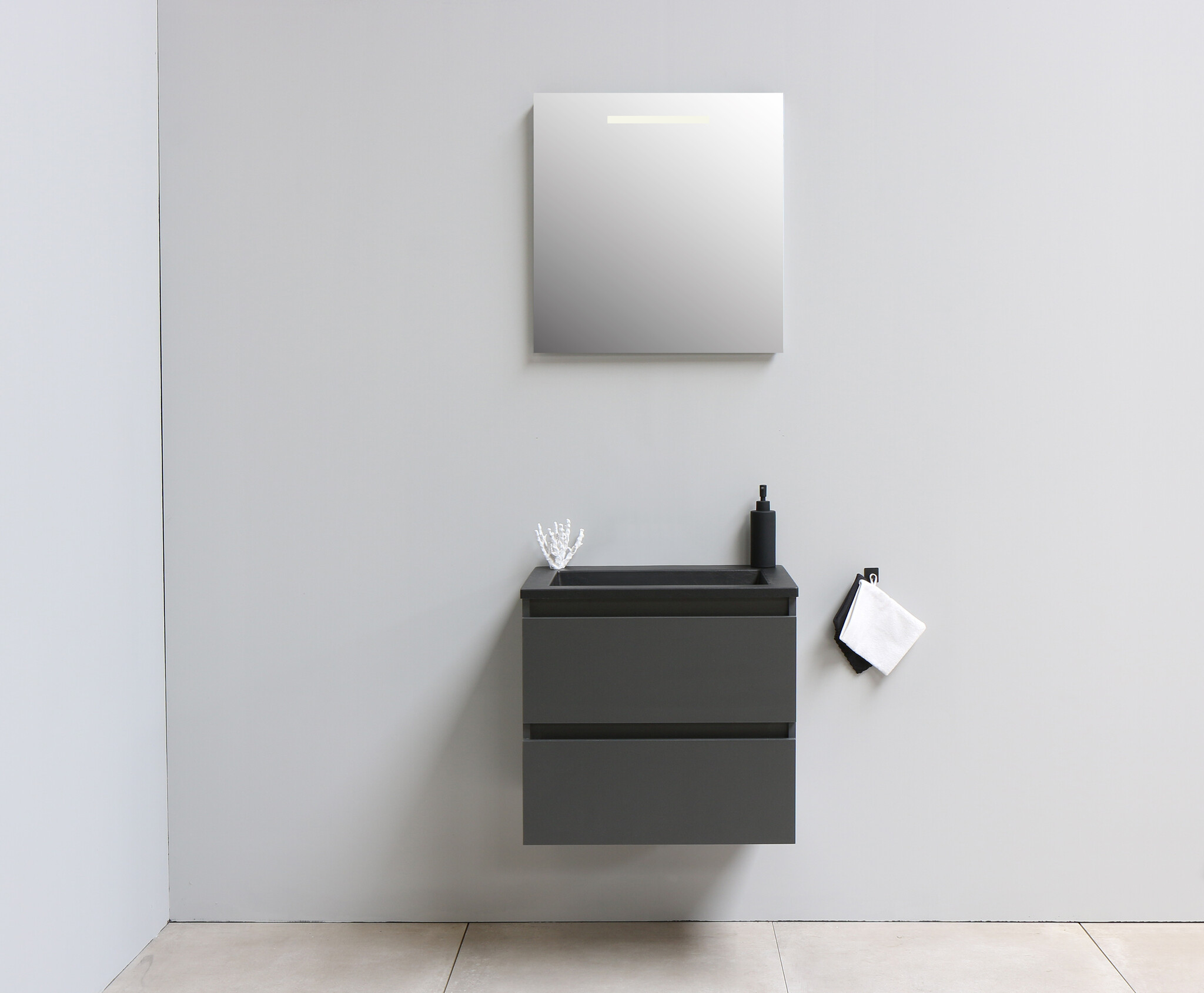 Solidline badkamermeubelset | 60cm | Keramiek | Mat zwart | 1 | Mat antraciet | Spiegel met LED verlichting | Bouwpakket
