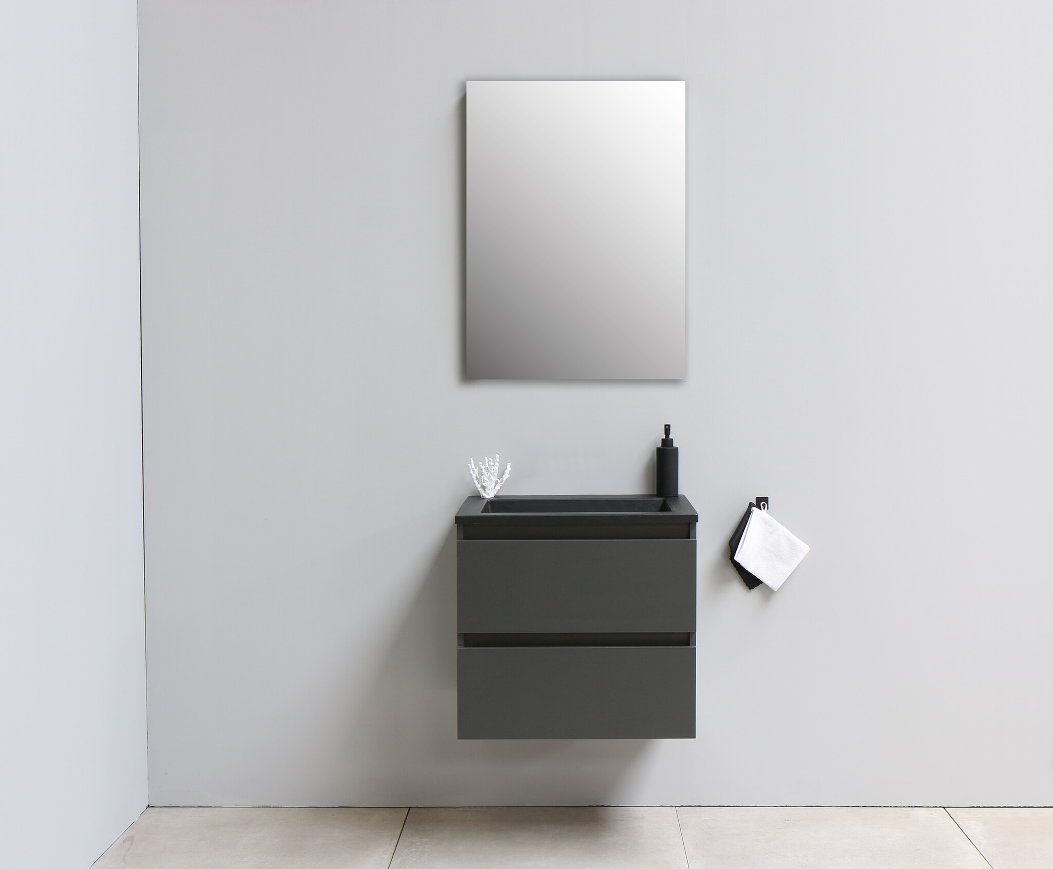 Solidline badkamermeubelset | 60cm | Keramiek | Mat zwart | 1 | Mat antraciet | Standaard spiegel | Geassembleerd