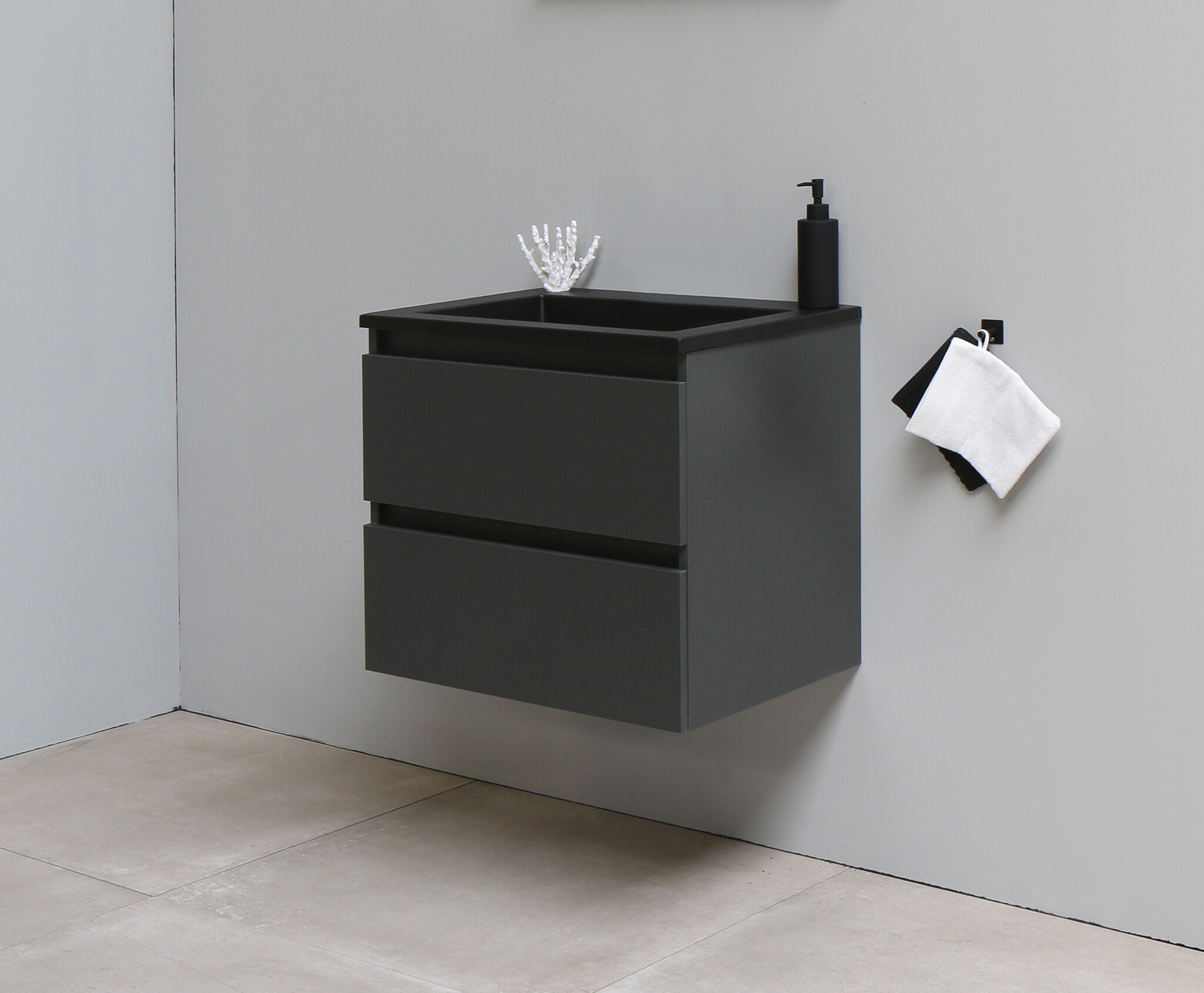Solidline badkamermeubelset - 60cm - Keramiek - Mat zwart - 1 - Mat antraciet - Zonder spiegel - Geassembleerd
