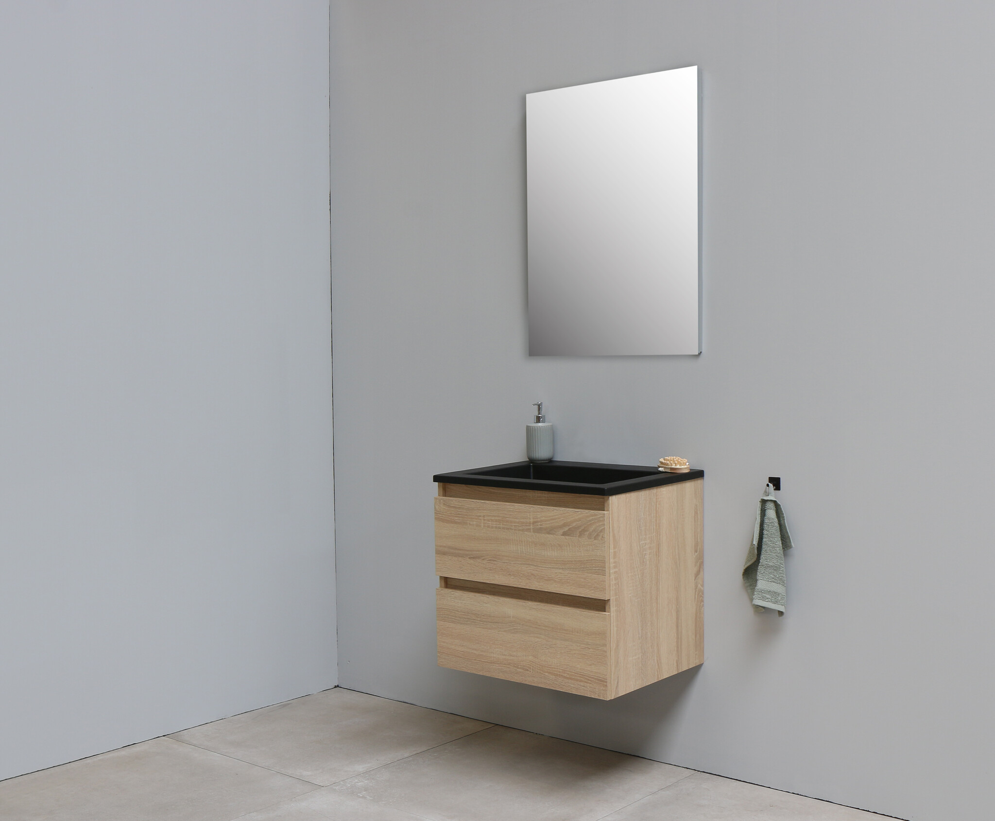 Solidline badkamermeubelset | 60cm | Keramiek | Mat zwart | 2 | Eiken | Standaard spiegel | Bouwpakket