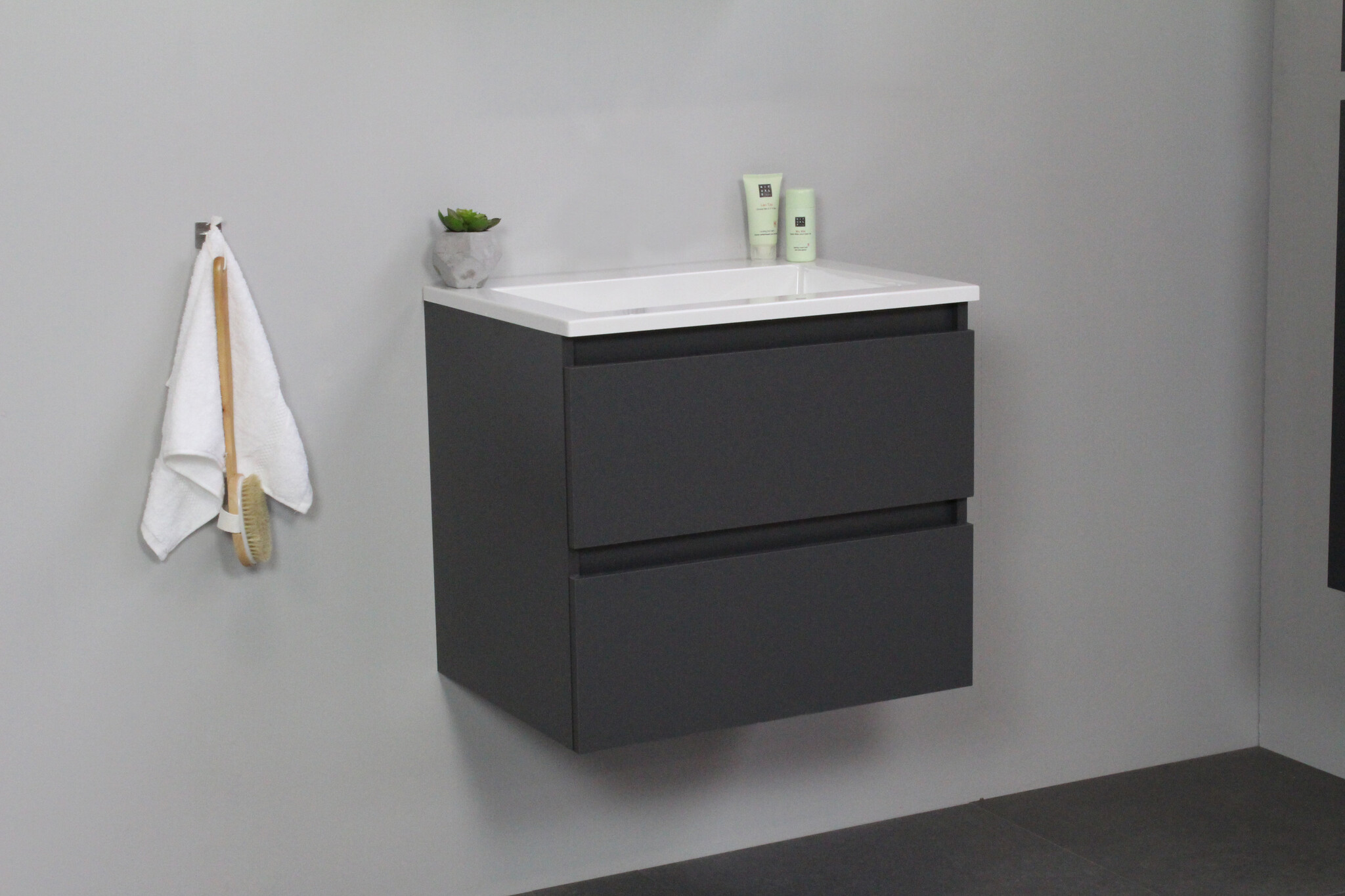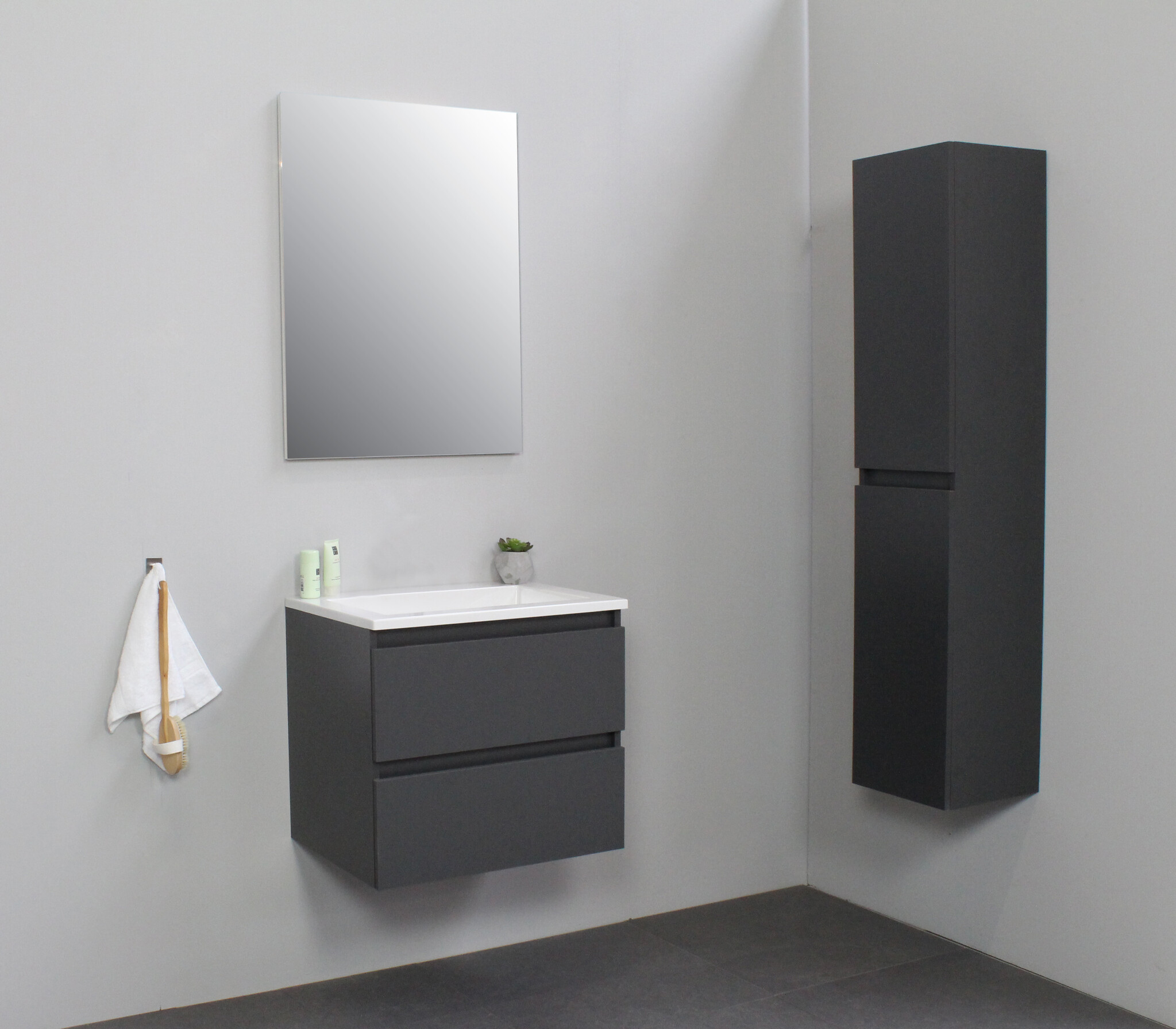 Offerte aanvraag voor Solidline badkamermeubelset | 60cm | Keramiek | Wit | 0 | Mat antraciet | Zonder spiegel | Geassembleerd