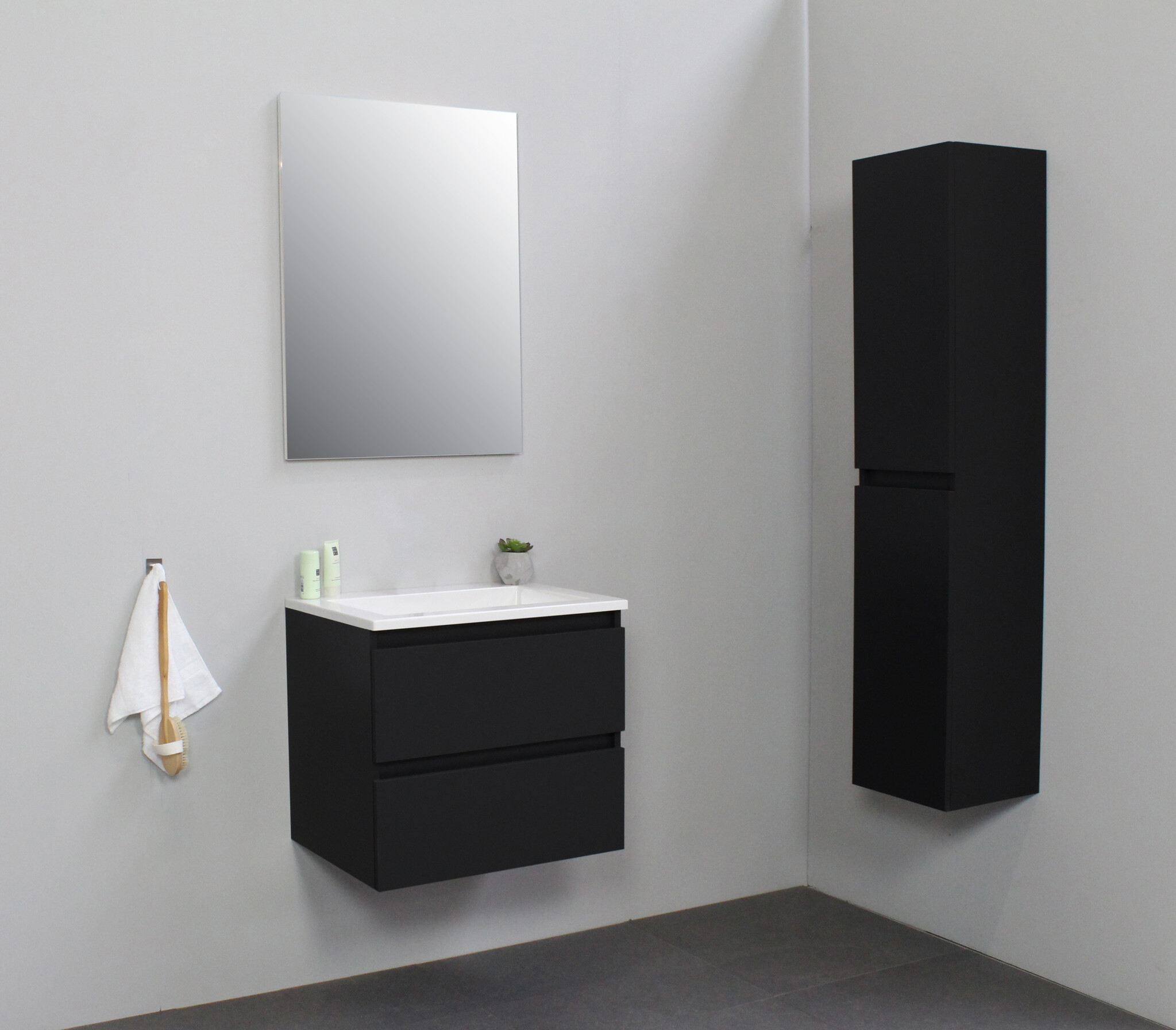 Offerte aanvraag voor Solidline badkamermeubelset | 60cm | Keramiek | Wit | 0 | Mat zwart | Standaard spiegel | Bouwpakket