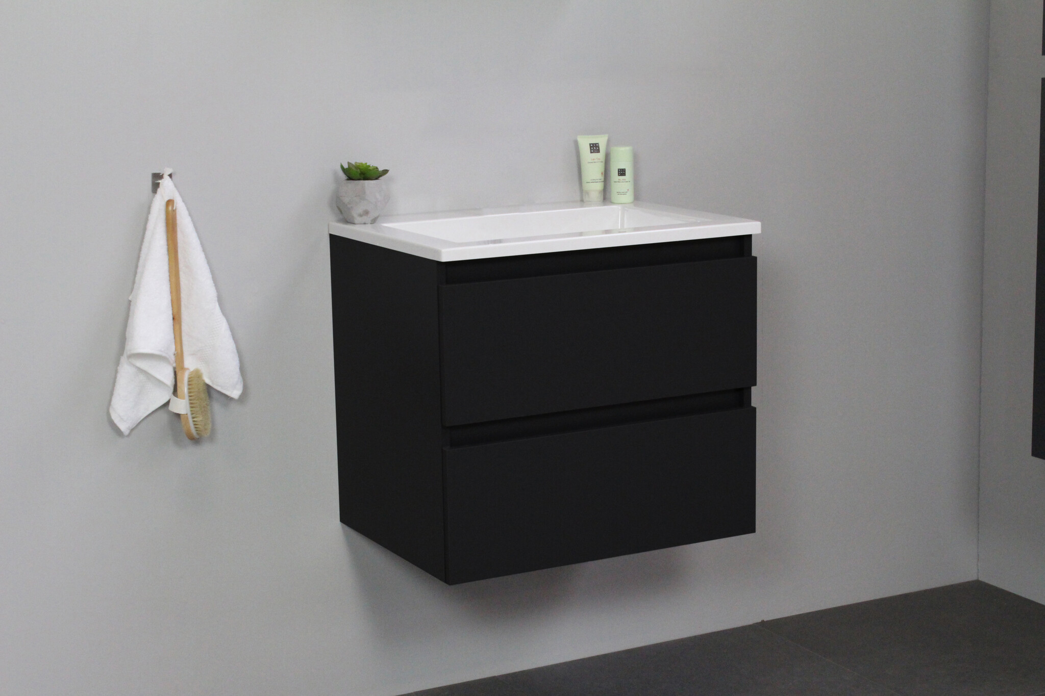 Offerte aanvraag voor Solidline badkamermeubelset | 60cm | Keramiek | Wit | 0 | Mat zwart | Zonder spiegel | Geassembleerd